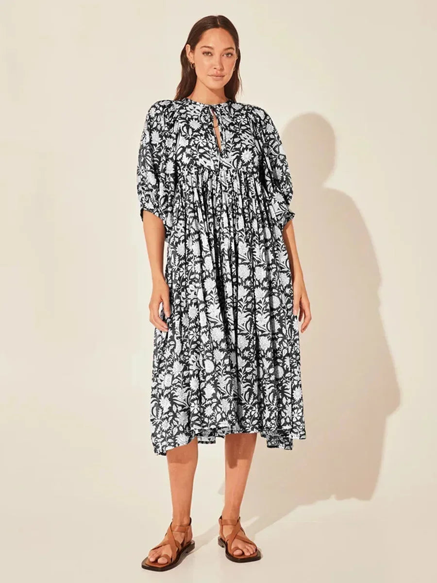 Blomsterprintet Midi Kjole | Løstsiddende & Komfortabel | Boheme Look