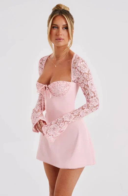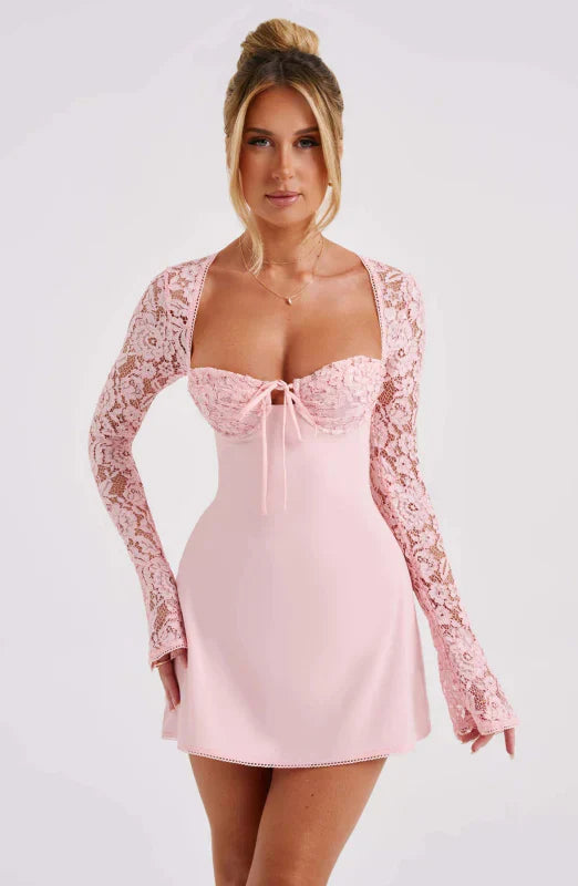 • Sensuelt Design: Tætsiddende pasform med elegante blondeærmer, der giver et feminint og sofistikeret look.