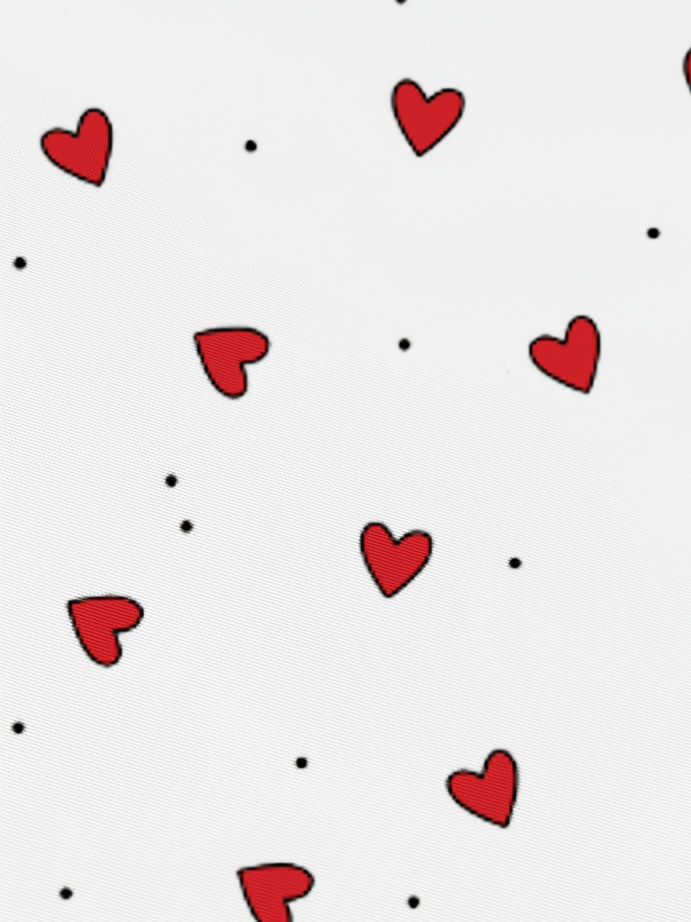 - Unikt design: Små røde hjerter på en elegant hvid baggrund.