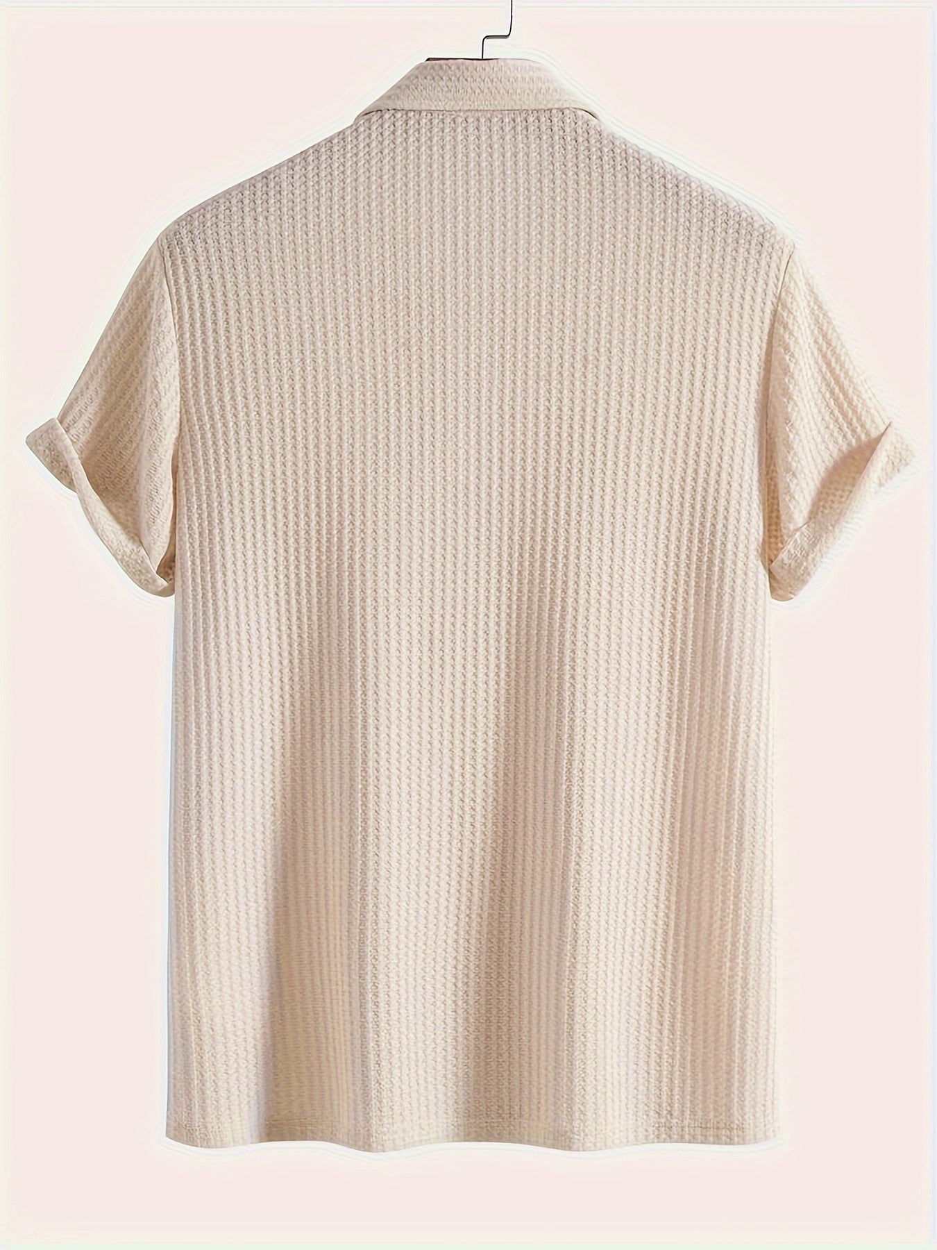 Denne kortærmede polo er lavet i et let og luftigt materiale med lodret struktureret overflade, som giver et stilfuldt præg uden at gå på kompromis med komfort. Den klassiske polokrave og enkel knapdetalje sikrer et tidløst look – perfekt til både sommerens afslappede dage og pæne, uformelle anledninger.