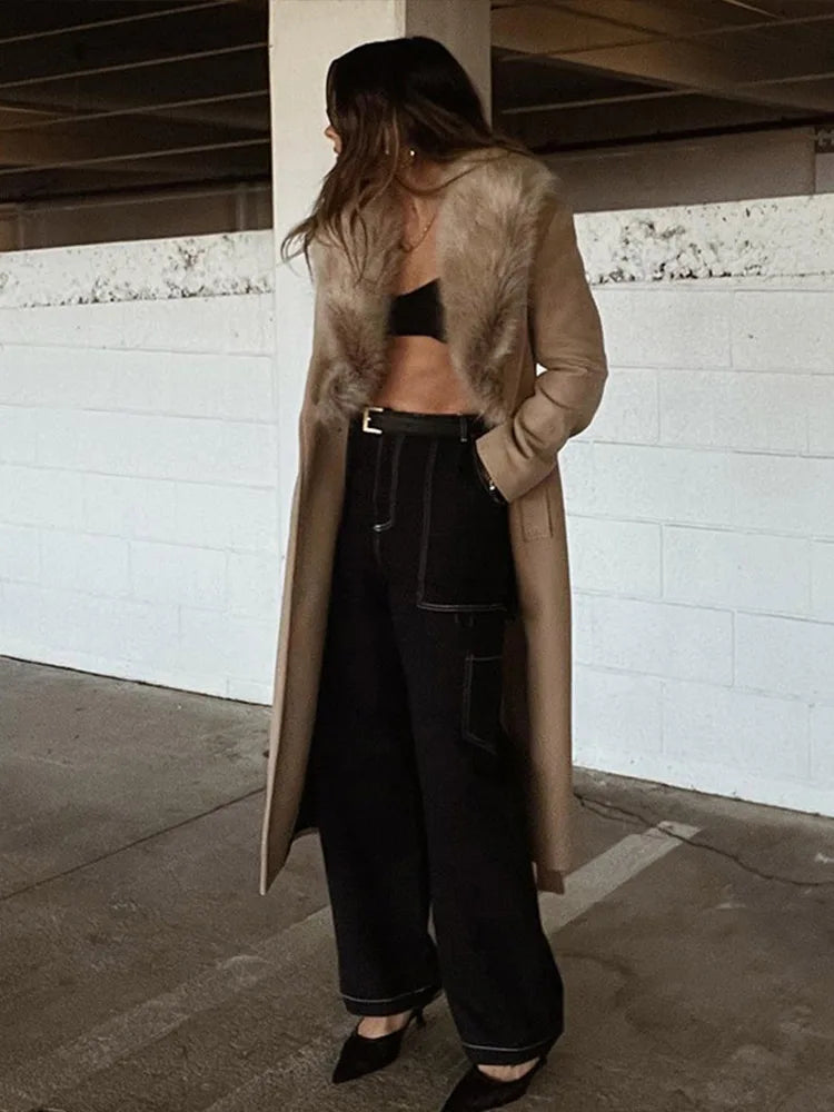 Lang Frakke med Kunstpelskrave | Taljeret Pasform | Elegant Look