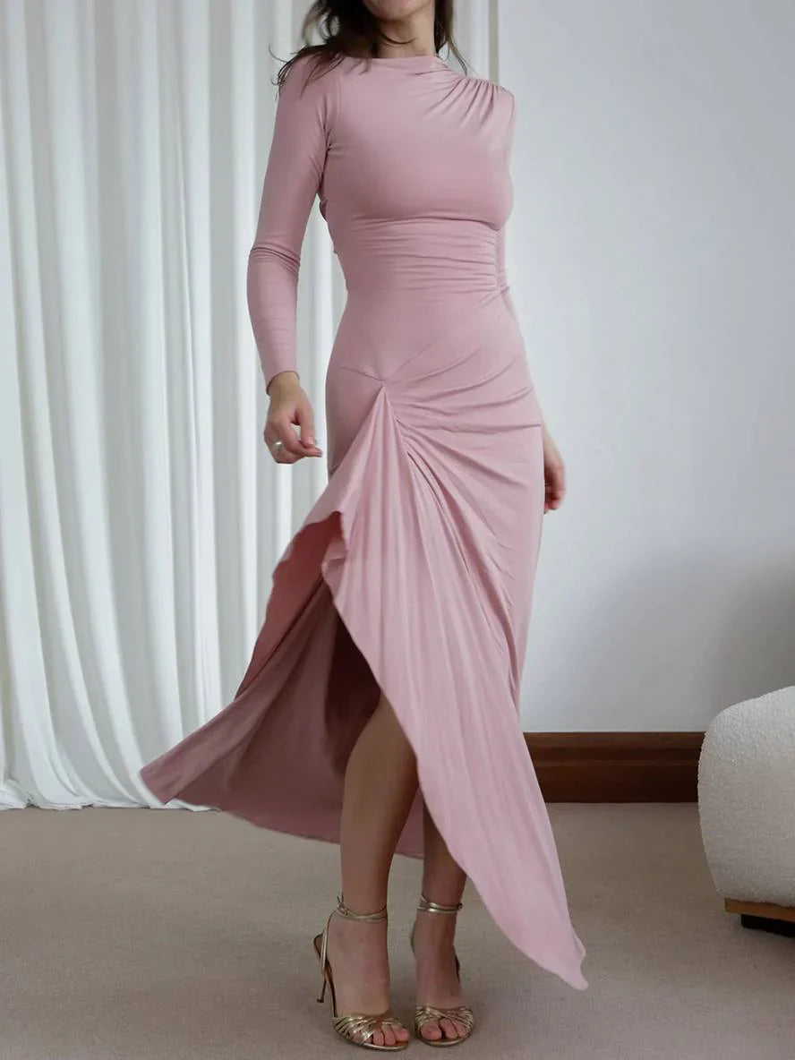 Langærmet Aftenkjole | Draperet Design | Sofistikeret Look