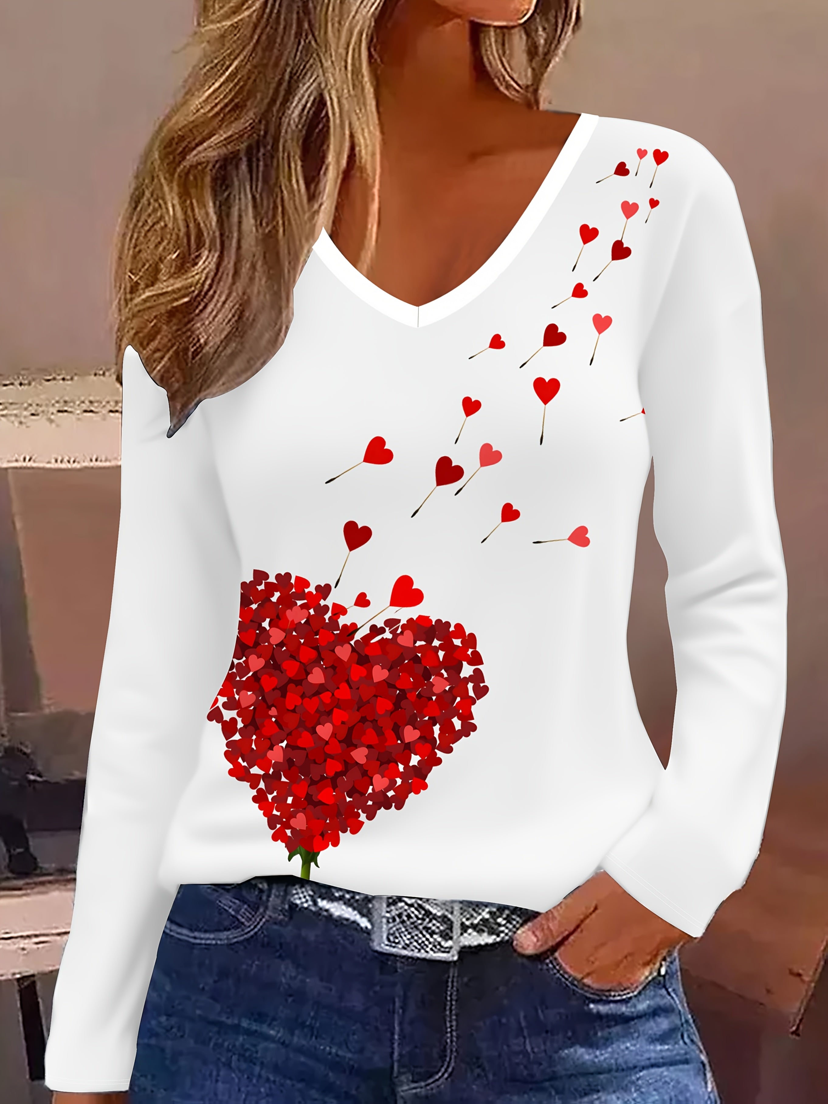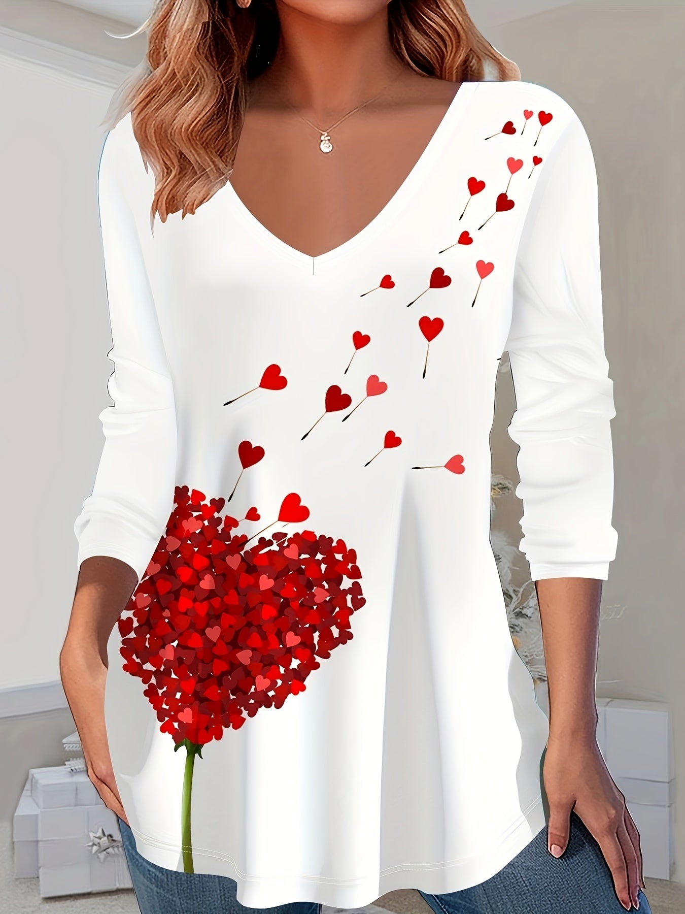 Langærmet Bluse med Hjerteprint | Blød & Romantisk | Unikt Design