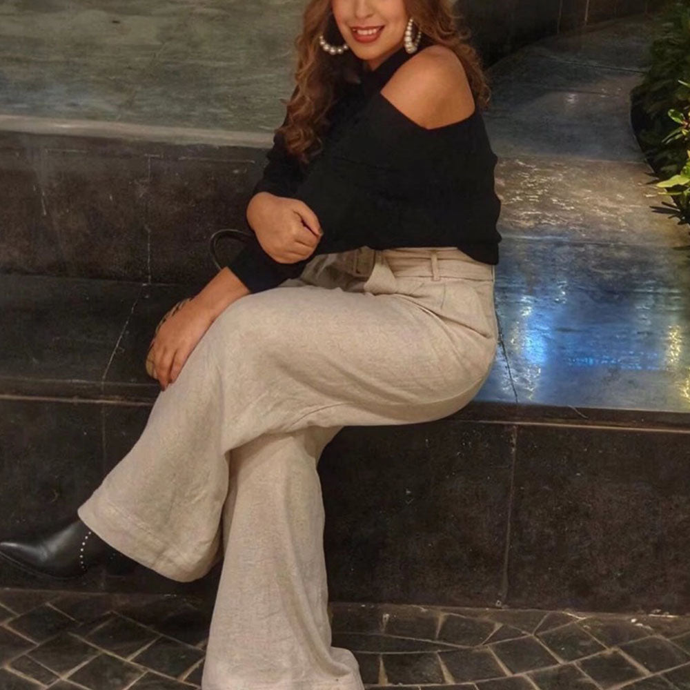 Denne off-shoulder sweater kombinerer stil og komfort i et unikt design. Den afslappede pasform og bløde strik gør den behagelig at have på, mens den asymmetriske skulderudskæring tilføjer et moderne touch. Perfekt til både hverdagsbrug og en aften ude.