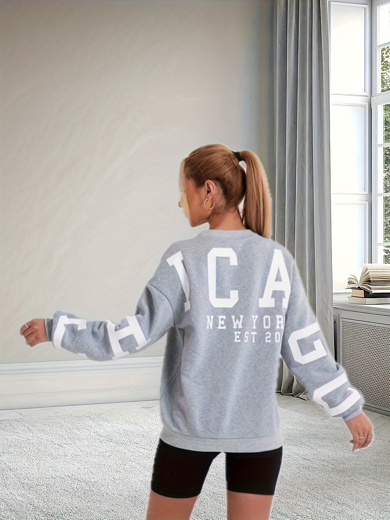 Overdimensioneret sweatshirt med "Chicago"-Print | Bomuldsblanding | Afslappet og Trendy