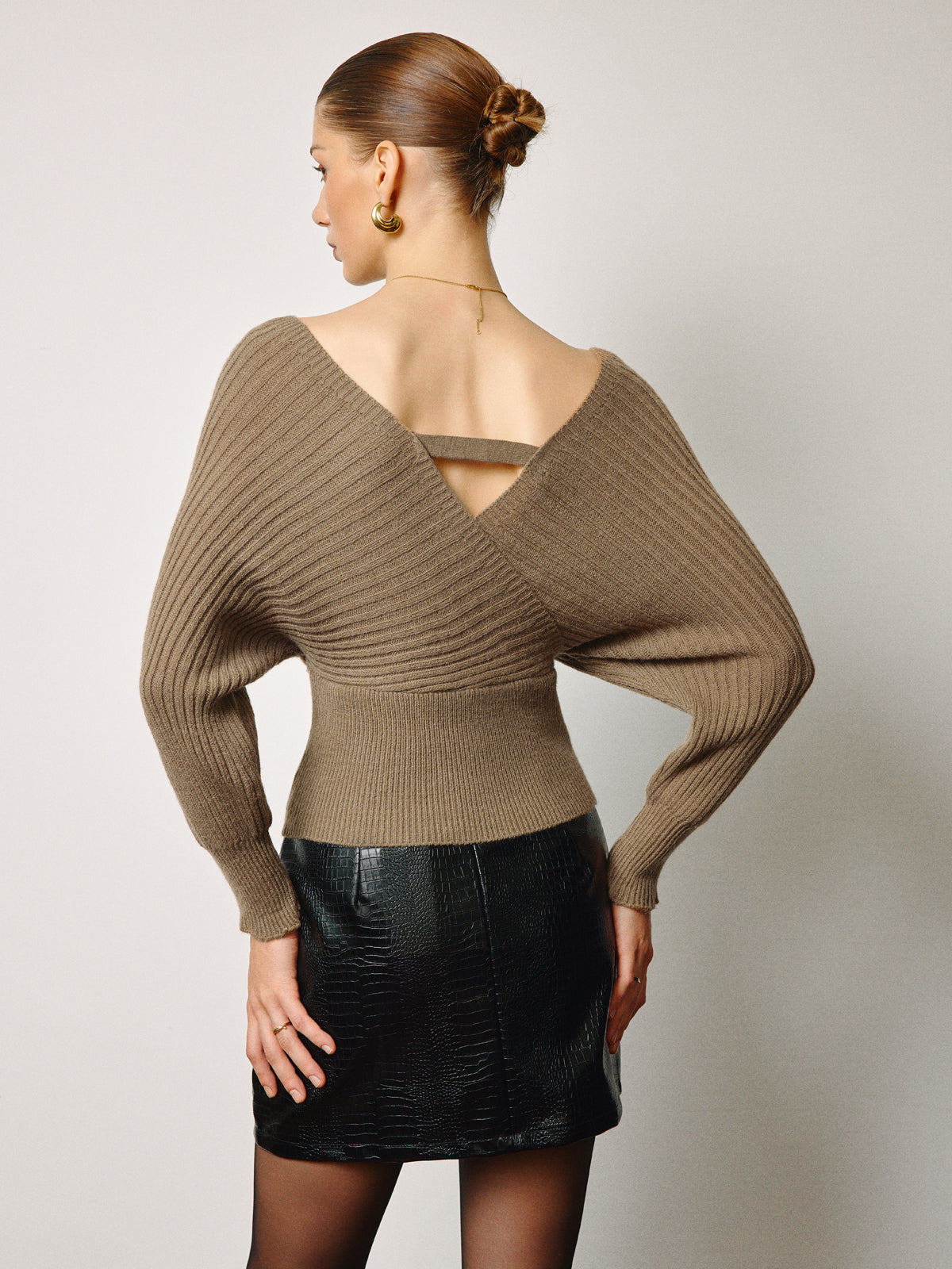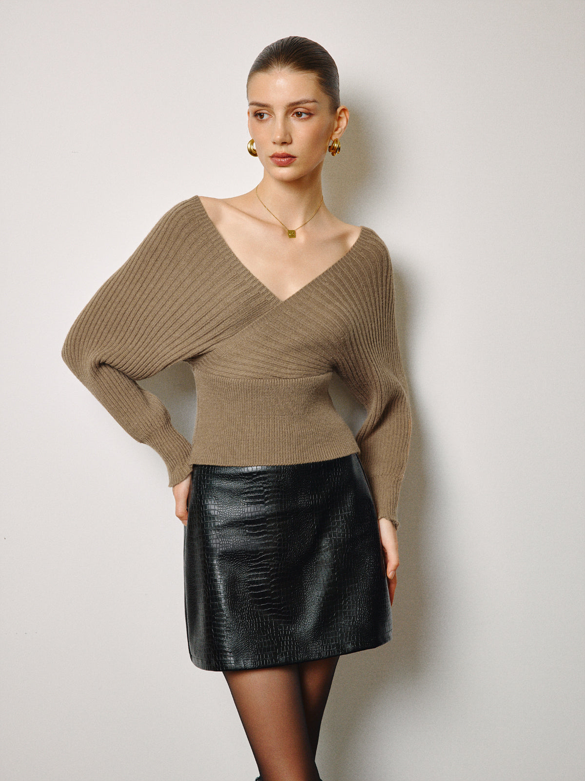 Ribstrikket Bluse | V-Udskæring & Omslagsdesign | Elegant & Feminin