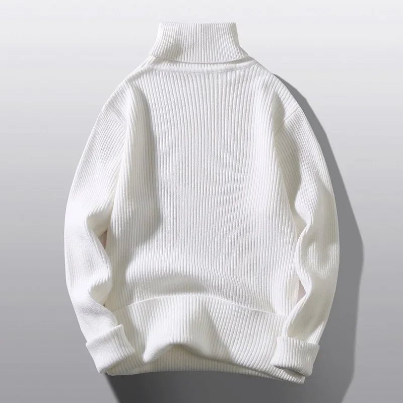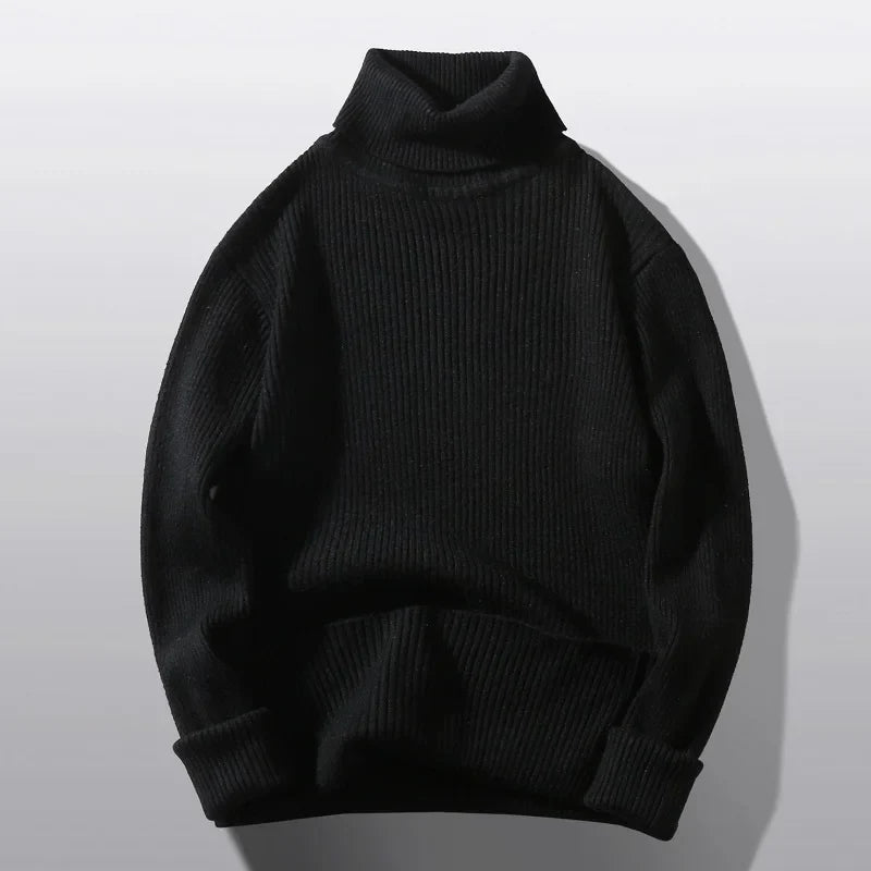 - Unikt design: Klassisk ribstrik med stilfuld rullekrave.