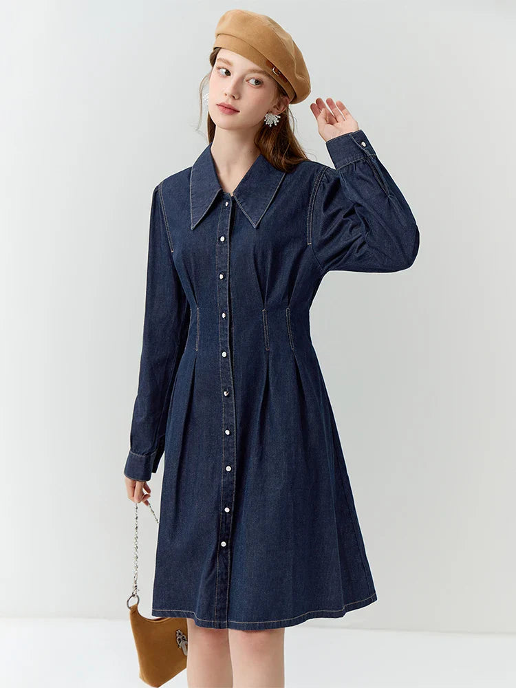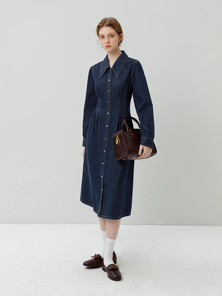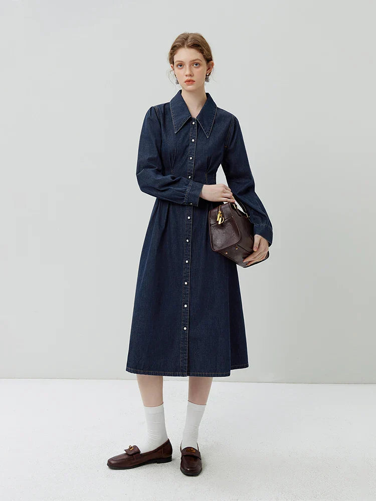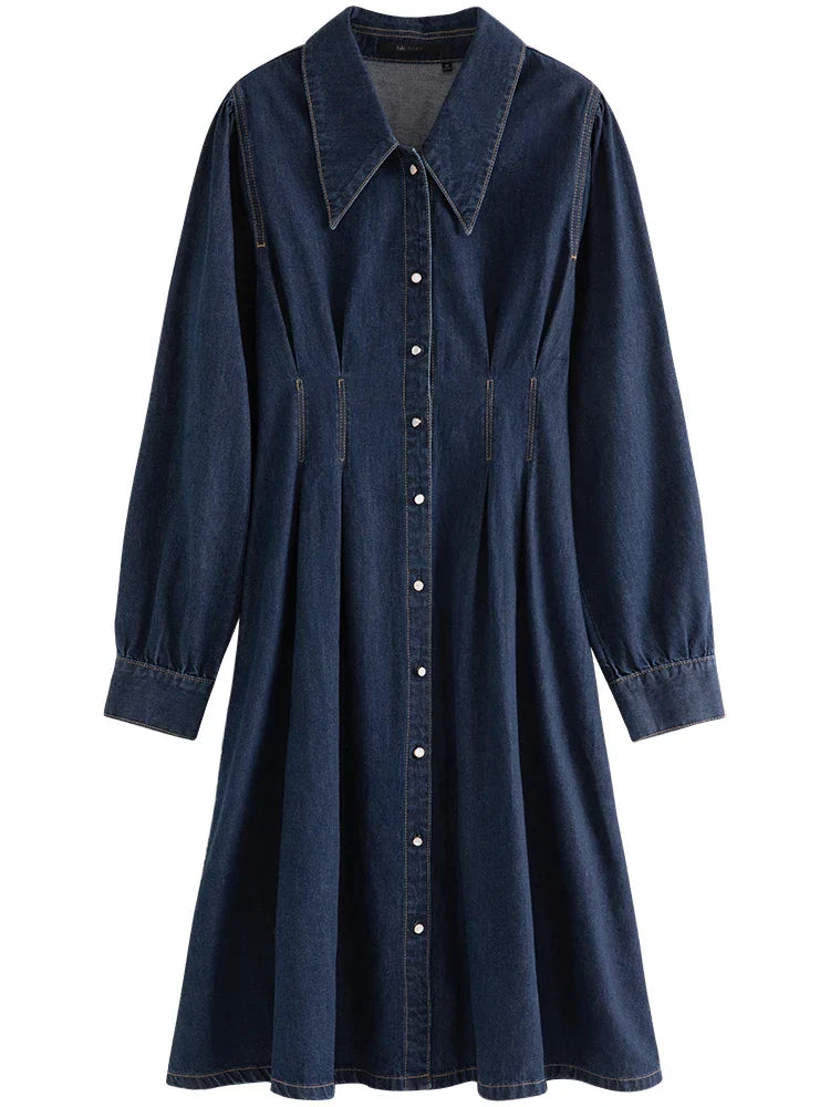 Bliv ubesværet elegant med vores Langærmede Denim Midi Kjole, som er perfekt til både afslappede og semi-formelle lejligheder. Denne kjole har en klassisk knaplukning foran og en flatterende A-line silhuet, der skaber et tidløst og sofistikeret look. Fremstillet af højkvalitets denim sikrer kjolen både komfort og holdbarhed, hvilket gør den til et alsidigt valg i din garderobe.