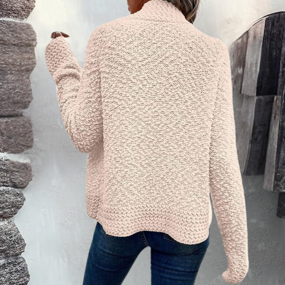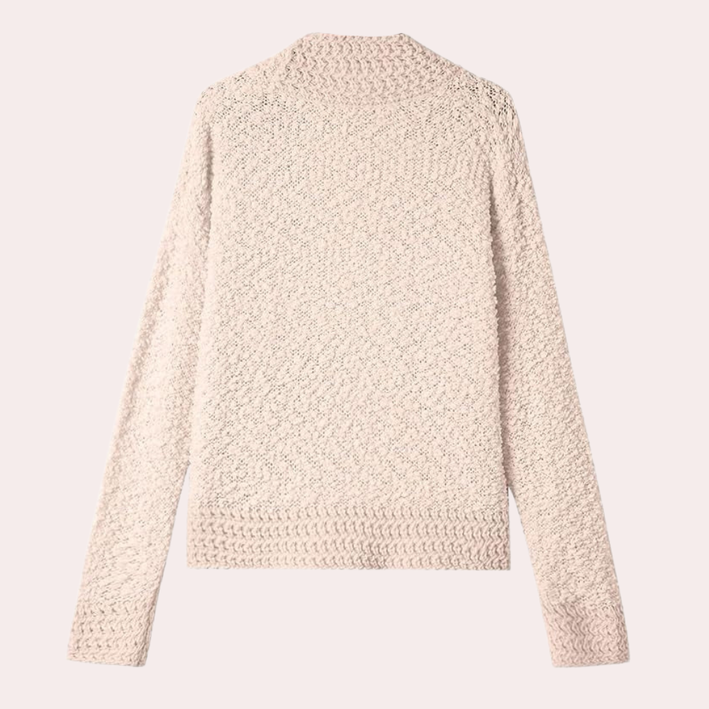 - Blød bouclé-strik: Skaber et luksuriøst og hyggeligt udtryk.