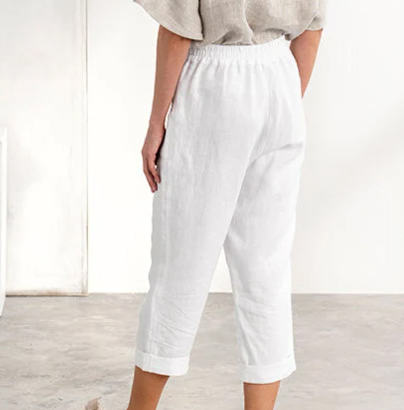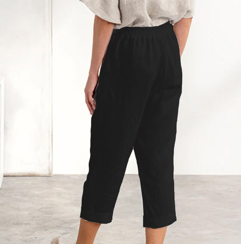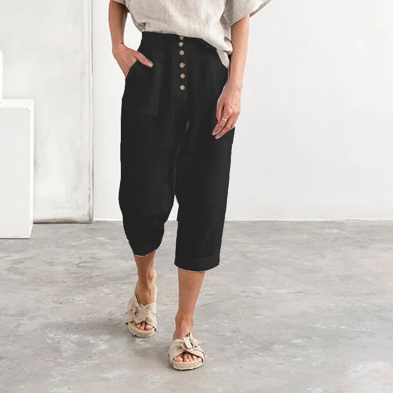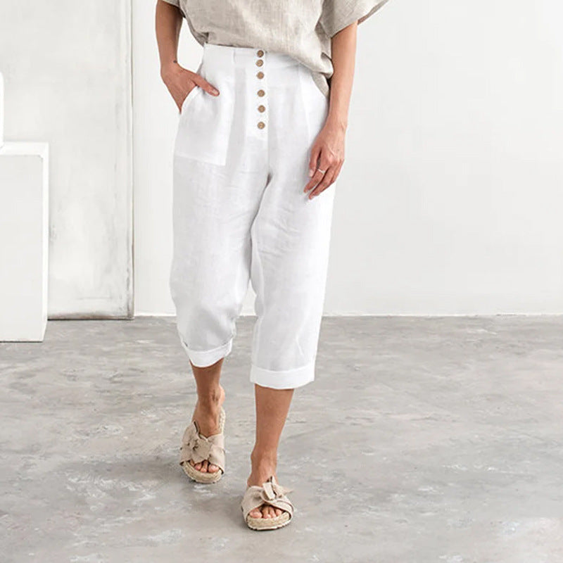 Stilfulde Capri Bukser med Knapper | Hørblanding | Luftig & Moderne