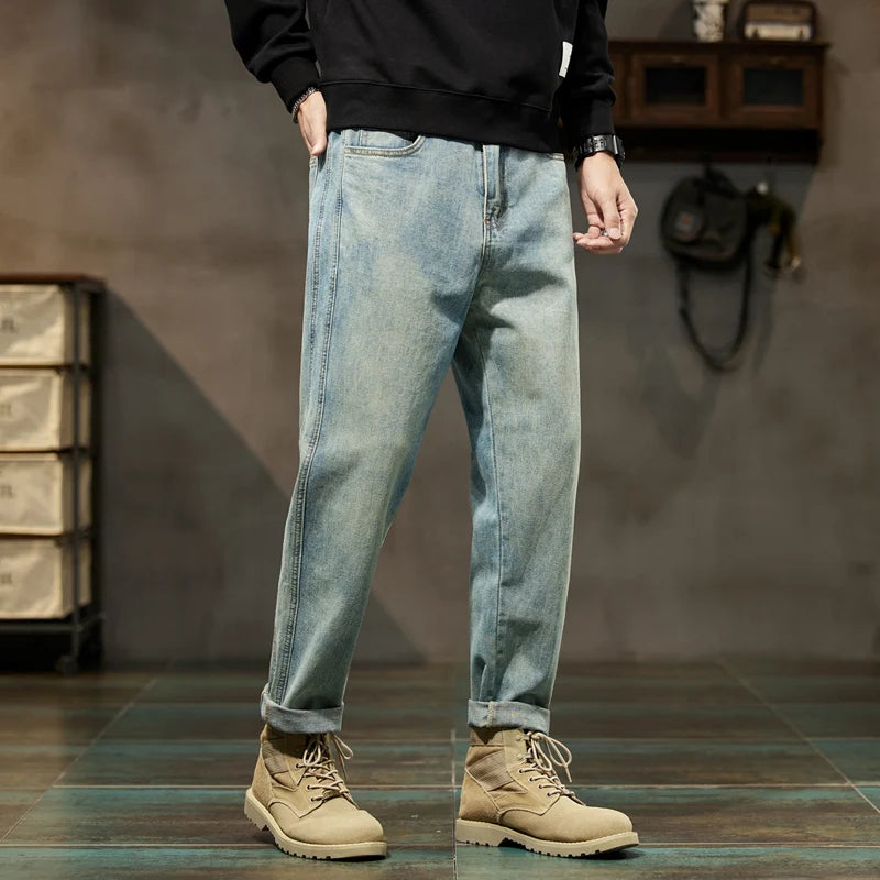 Disse løstsiddende jeans kombinerer et klassisk retrolook med moderne komfort. Det brede snit giver bevægelsesfrihed og et afslappet udtryk, perfekt til både hverdagsbrug og streetwear-stil. Med foldede bukseben og slidstærk finish er de ideelle til dig, der ønsker et cool og ubesværet look.