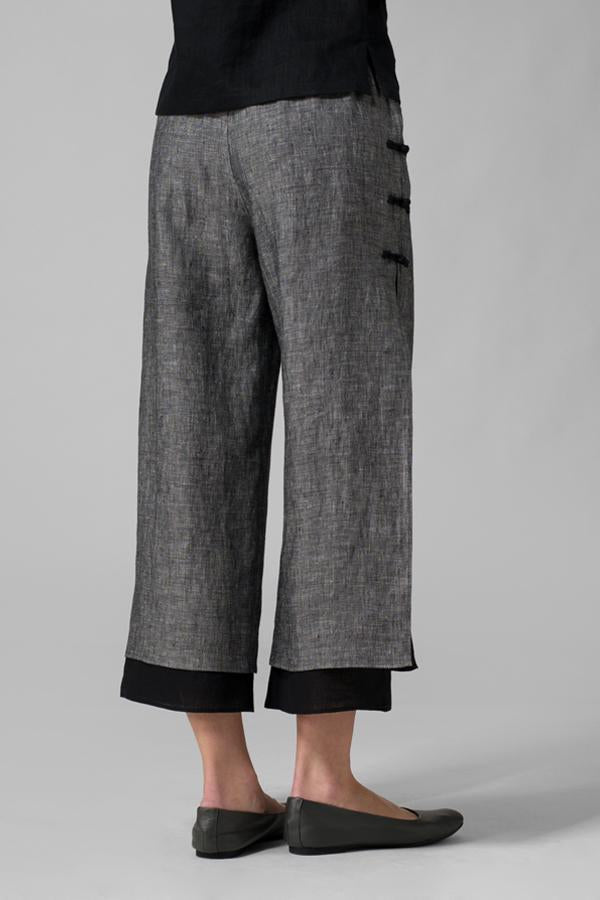Wide-Leg Bukser med Lagdelte Detaljer | Hørblanding | Elegant & Komfortabel