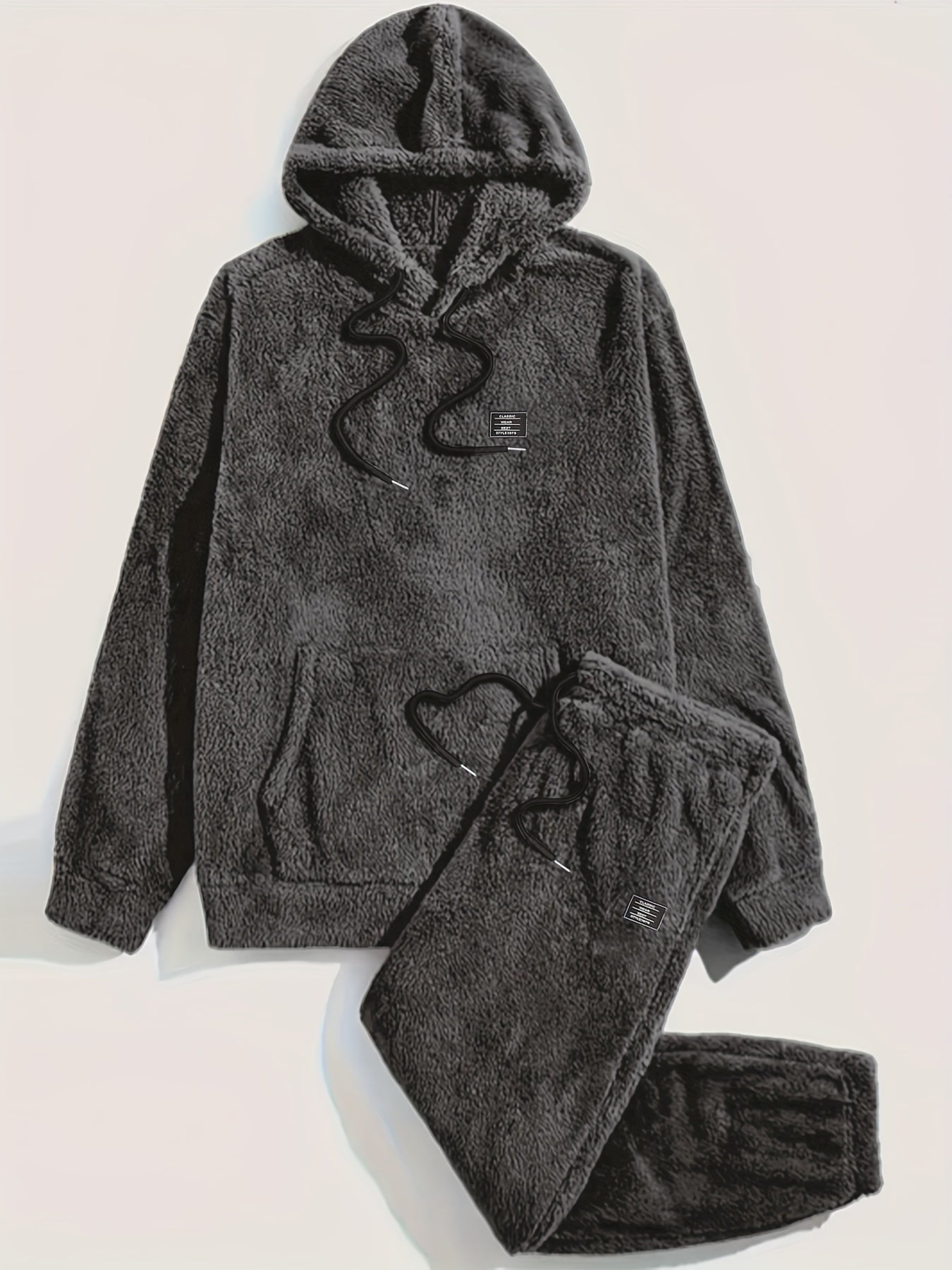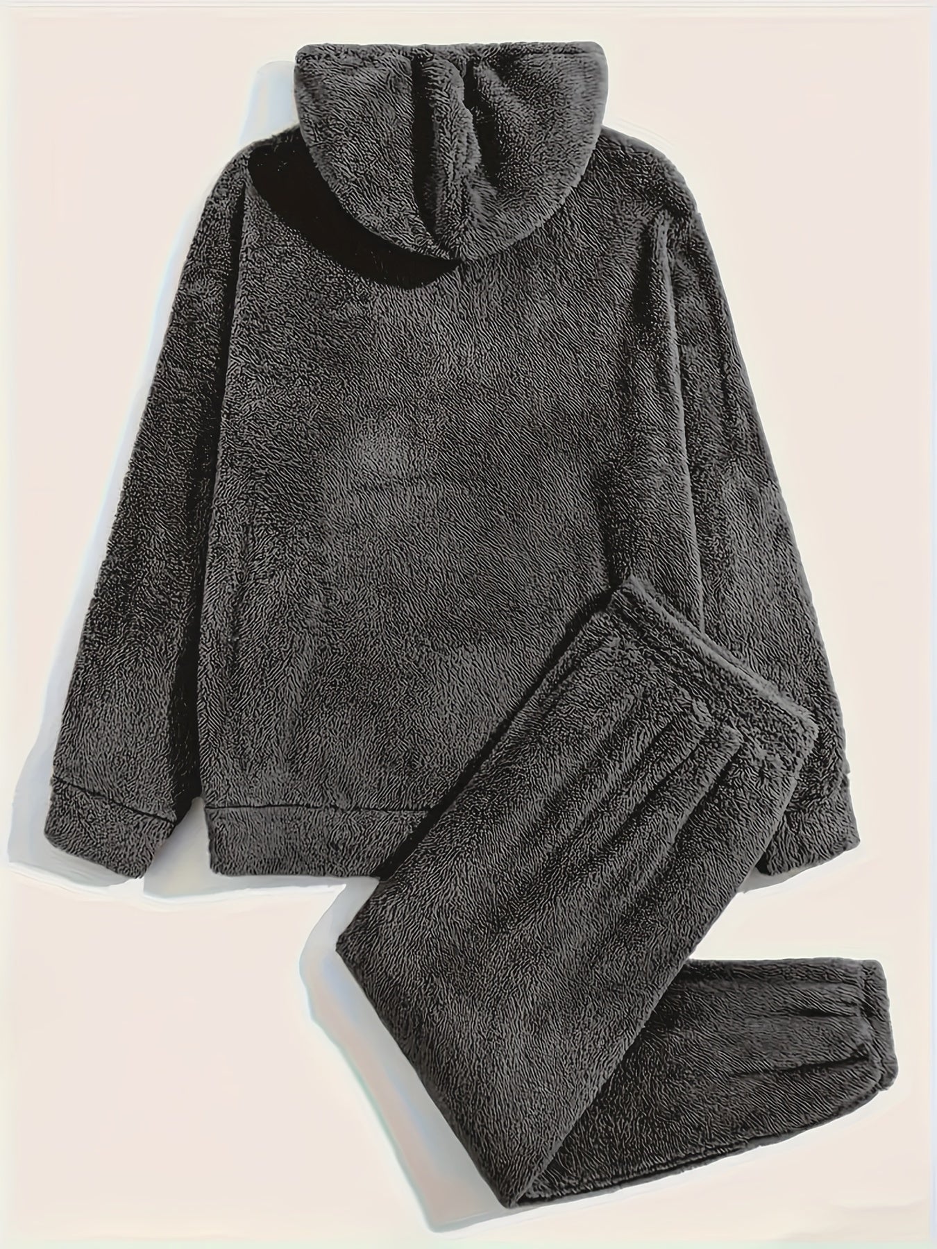Dette teddyfleece-sæt med hættetrøje og matchende bukser er den perfekte løsning til kolde dage og hyggelige stunder. Det ultra-bløde materiale omfavner kroppen med varme, mens det ensartede design skaber et rent og moderne look – ideelt til afslapning i hjemmet eller rolige dage udenfor.