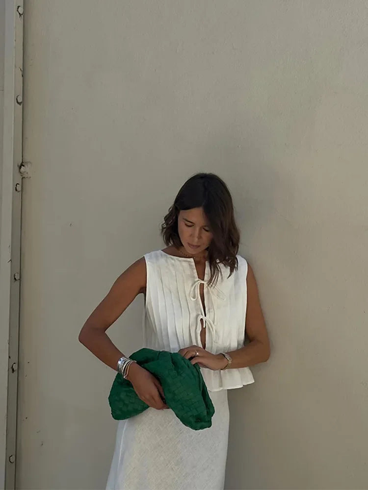 Styling-tip: Style sættet med elegante sandaler og en stråtaske for et afslappet sommerlook, eller tilføj stilfulde hæle og minimalistiske smykker for et formelt og raffineret udtryk. Fuldfør looket med en let blazer for et sofistikeret touch.