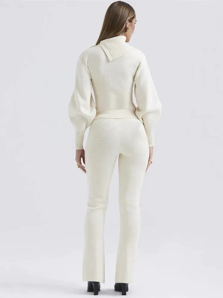 Strikket Buksesæt | Asymmetrisk Krave | Elegant & Moderne Look
