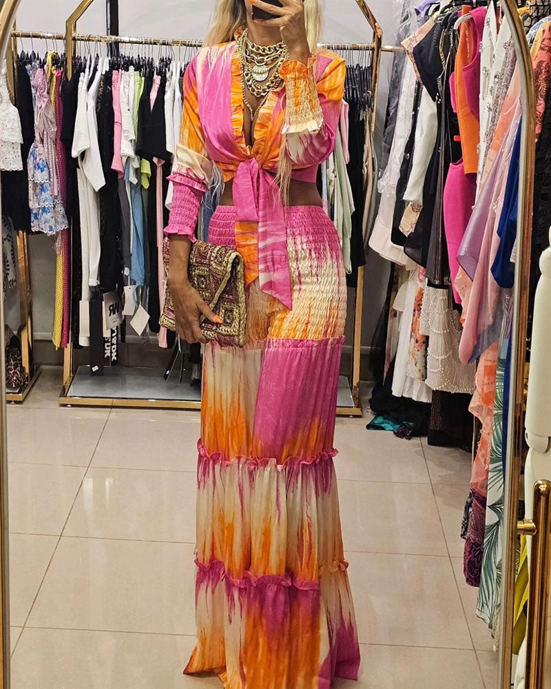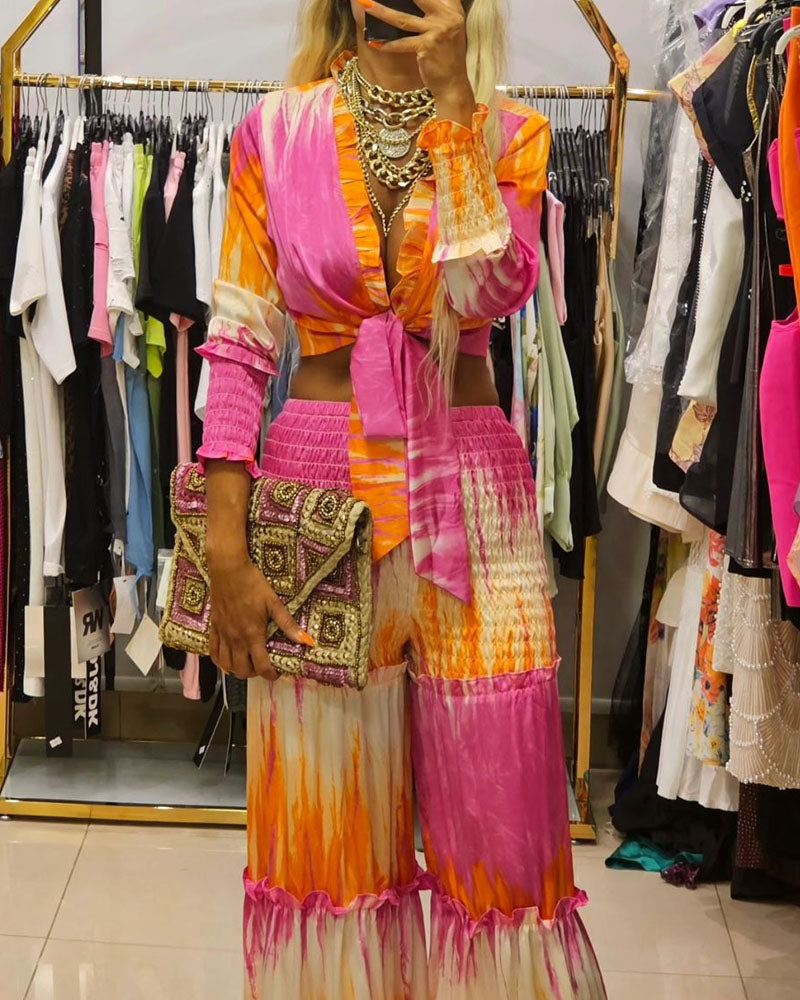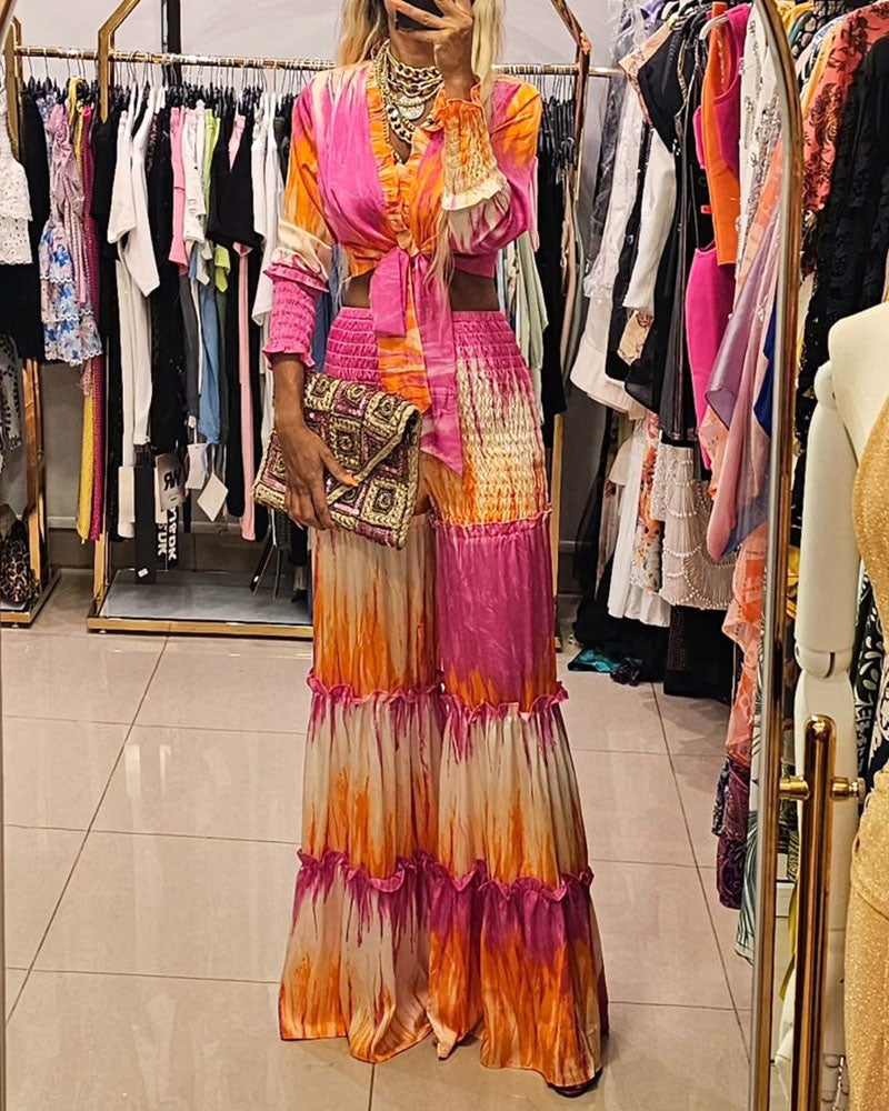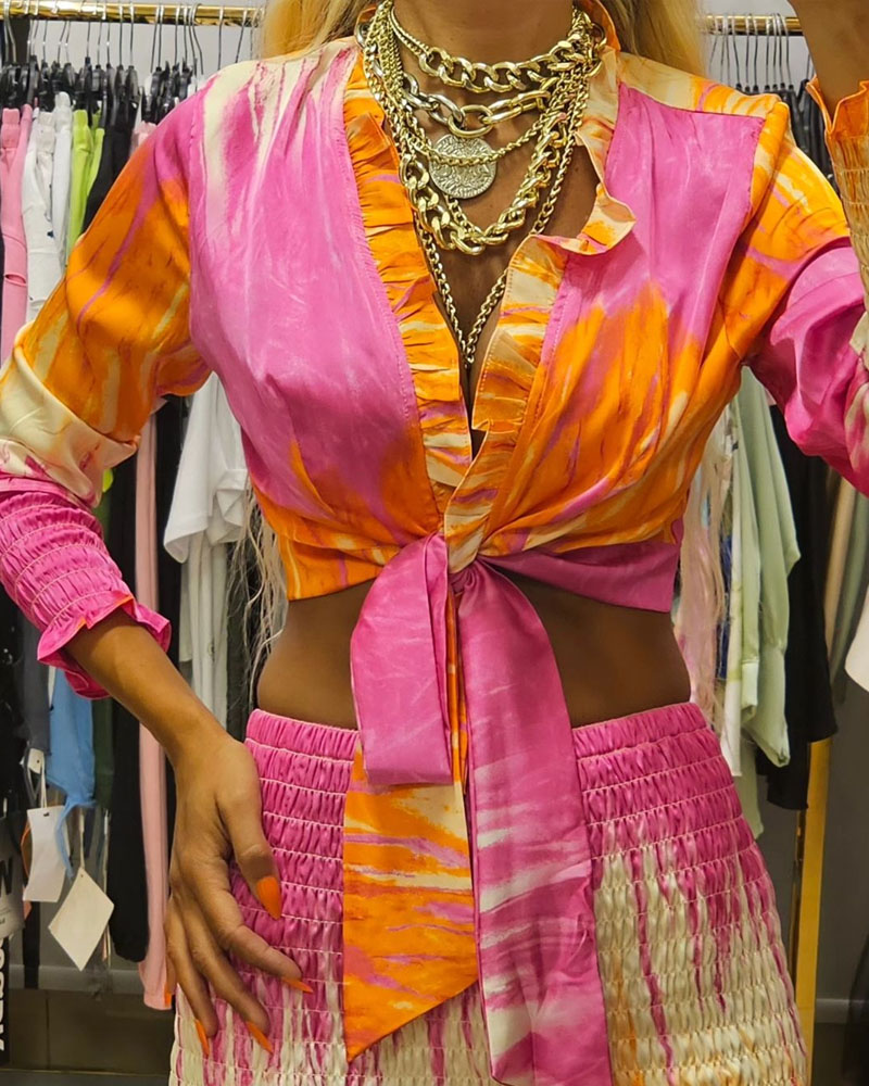 Tie-Dye To-delt Sæt med Bindebånd | Chiffon | Farverigt