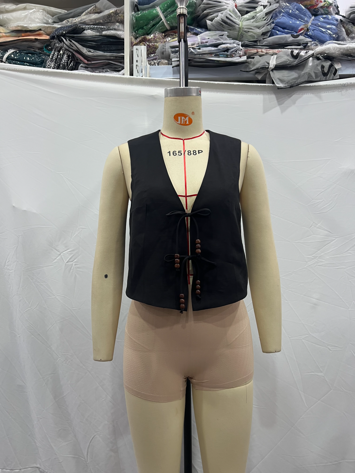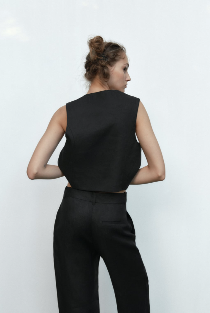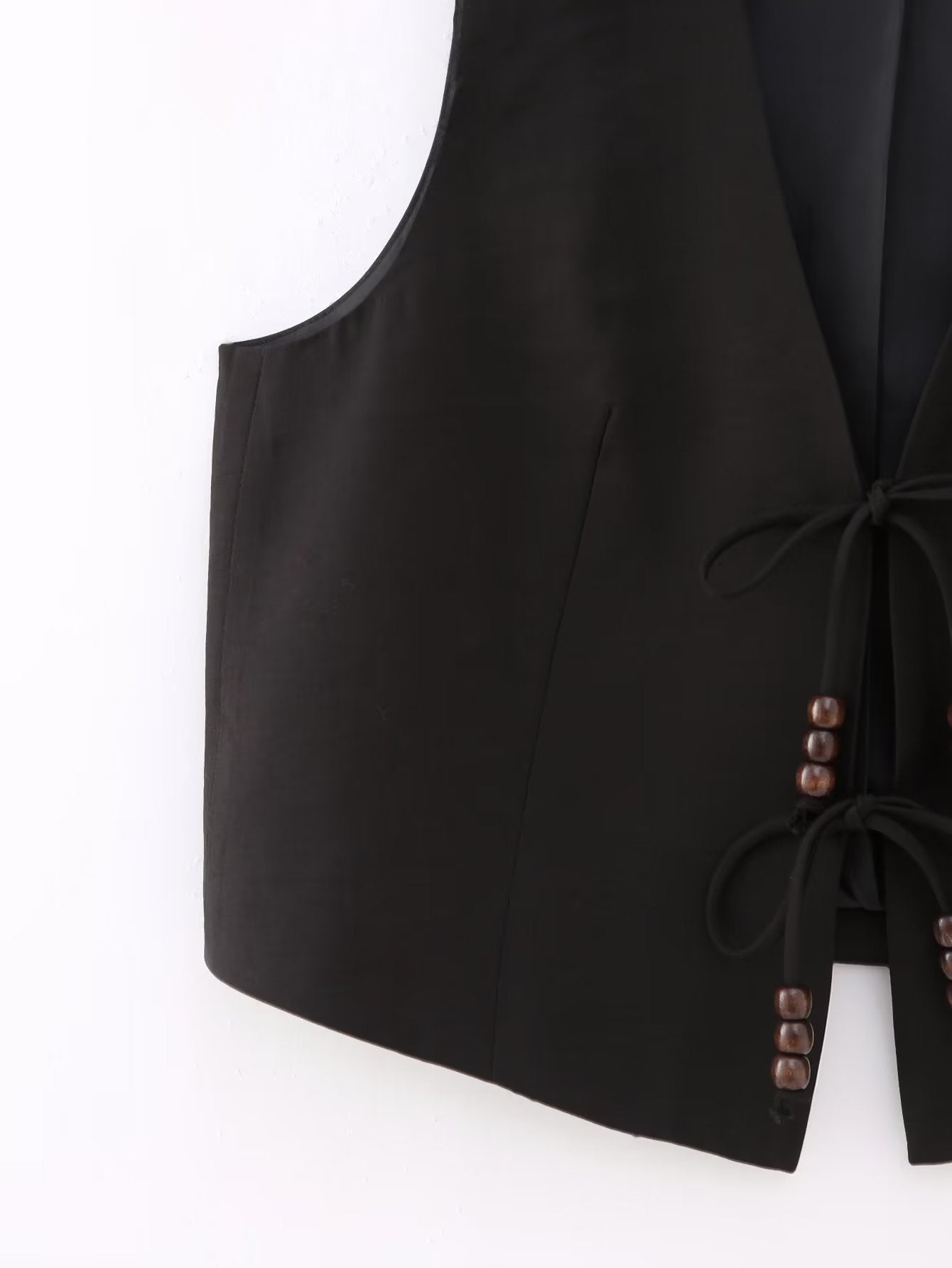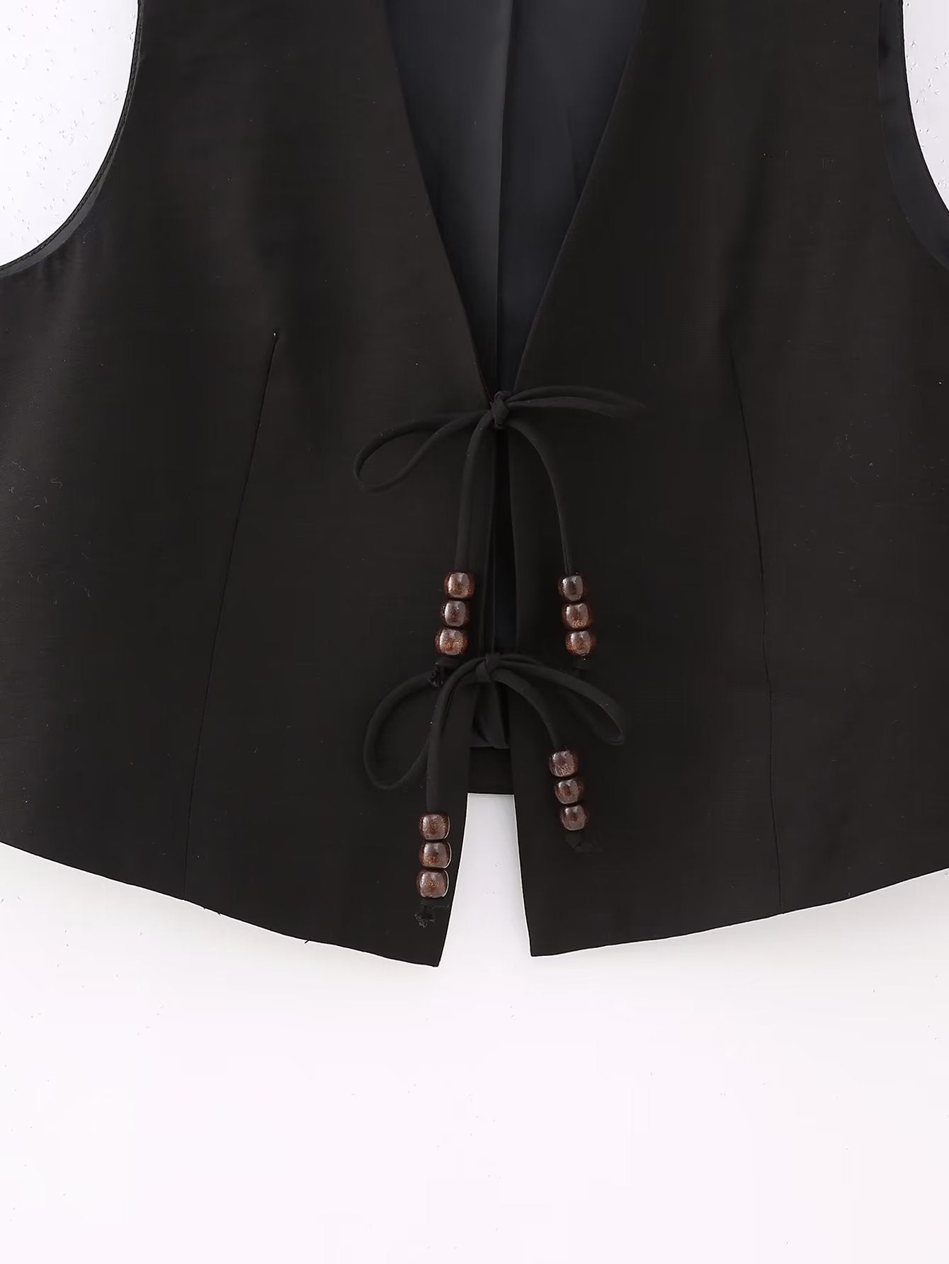 Ærmeløs Vest med Bindesnor Detalje | Sort | Let & Elegant
