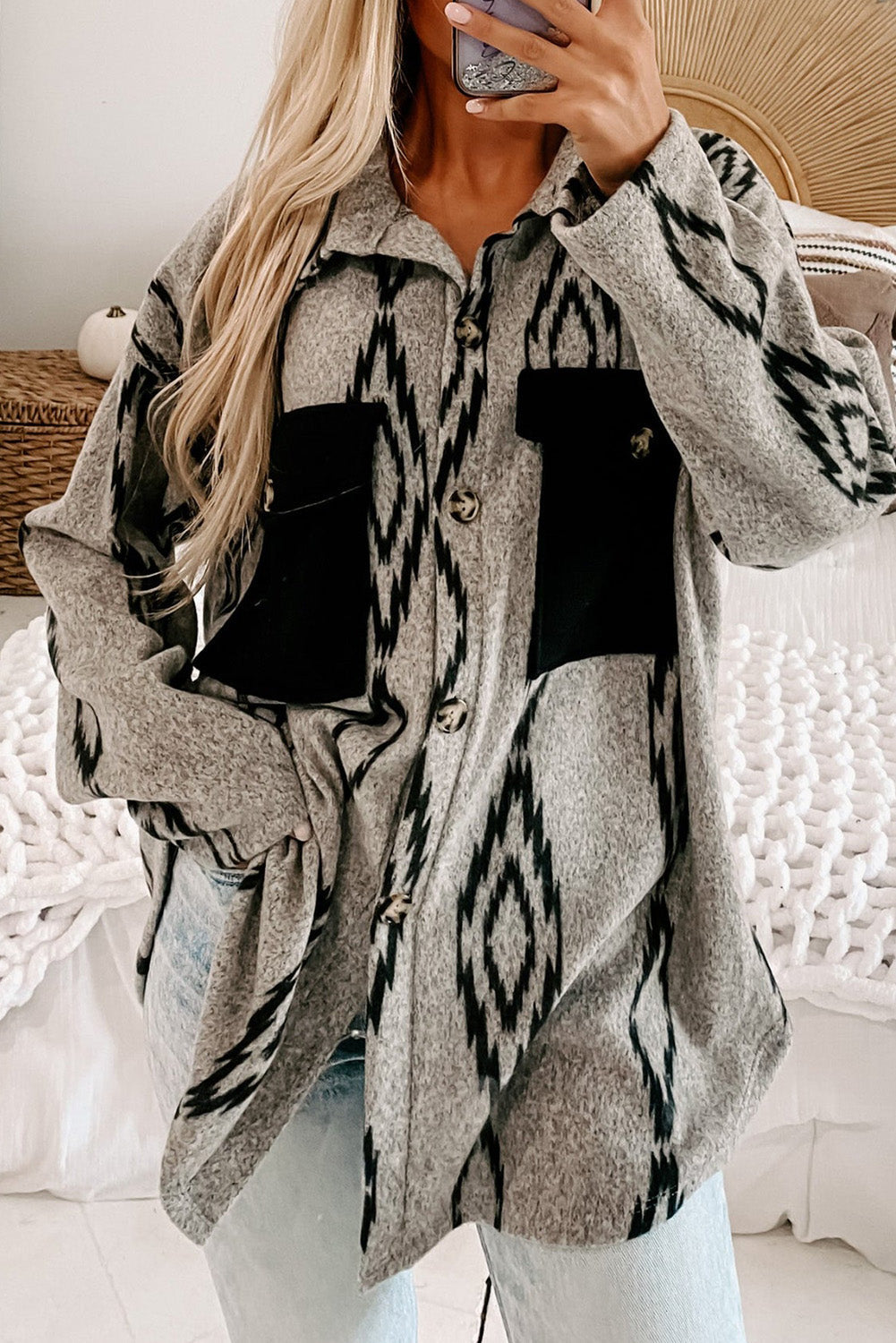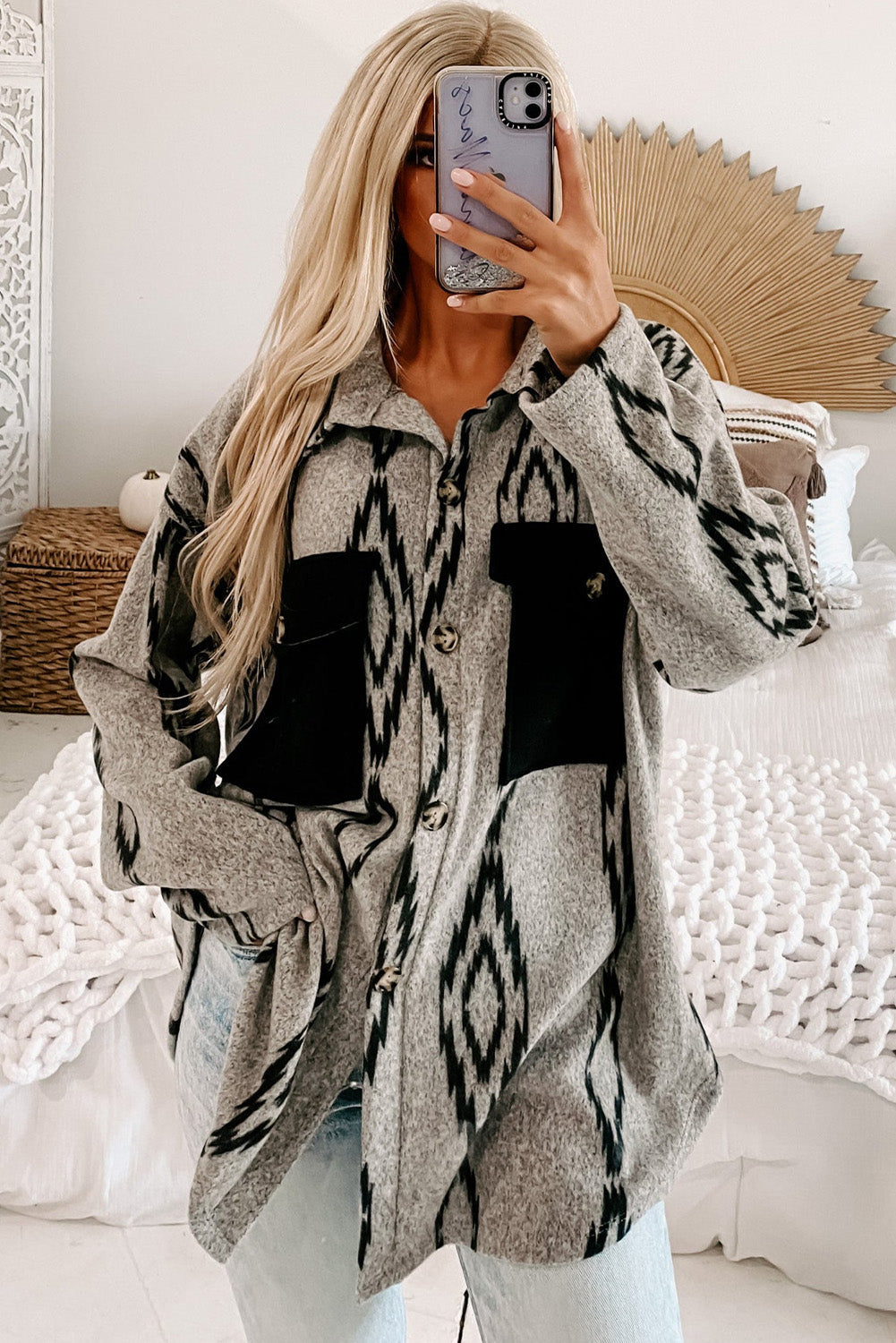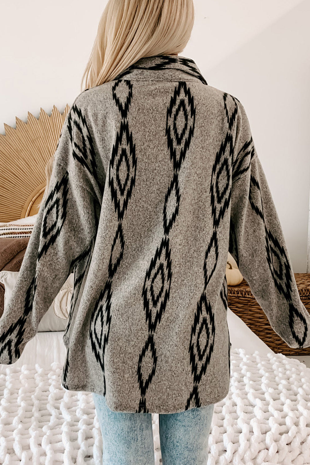 Skjortejakke med aztekisk print | Blød uldblanding | Boho-Chic stil