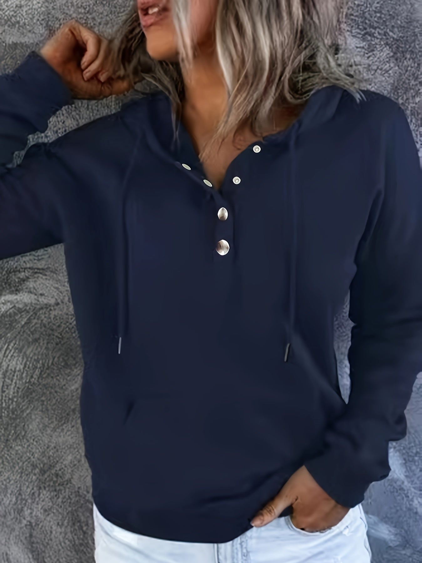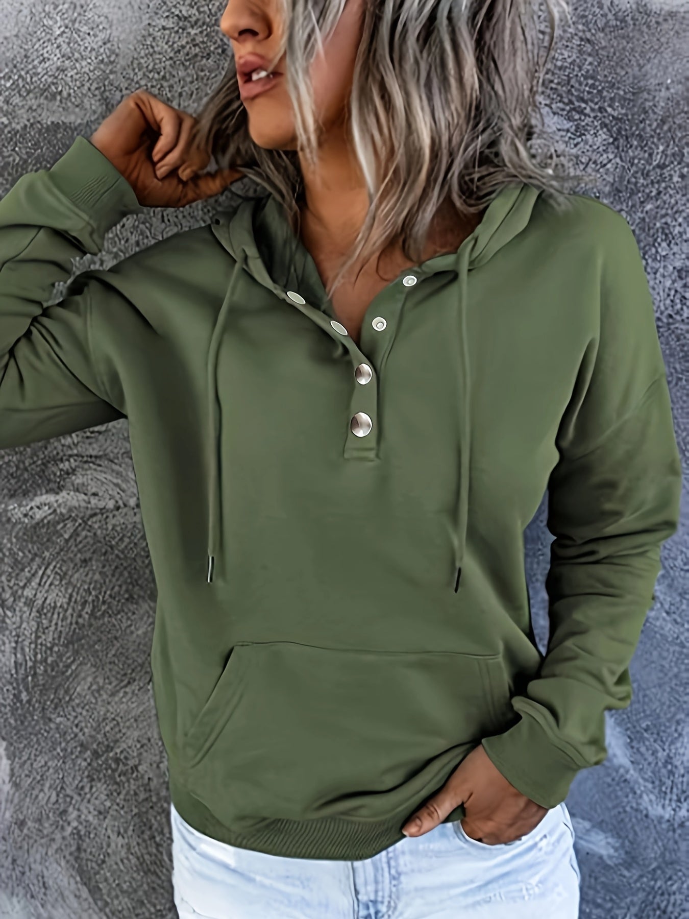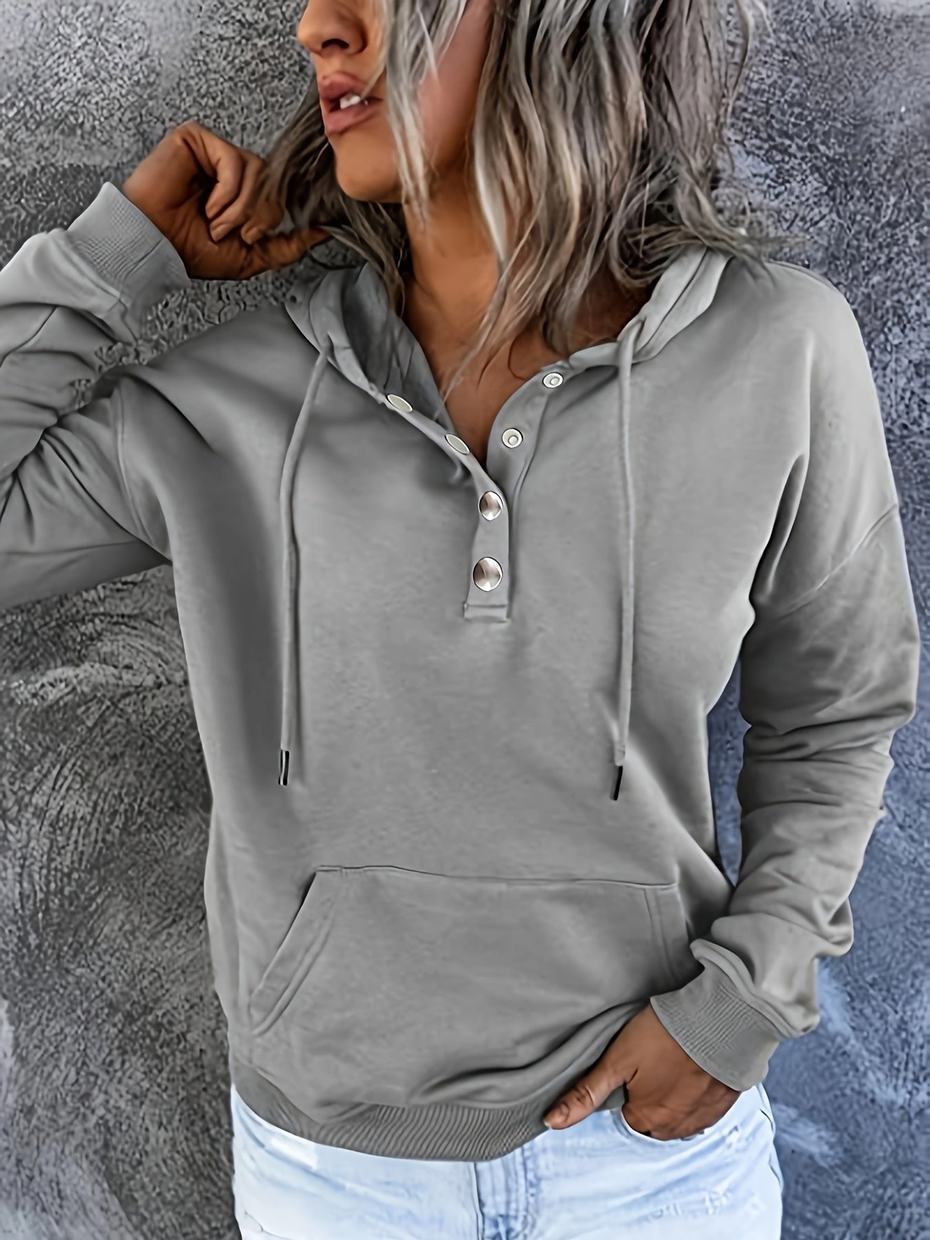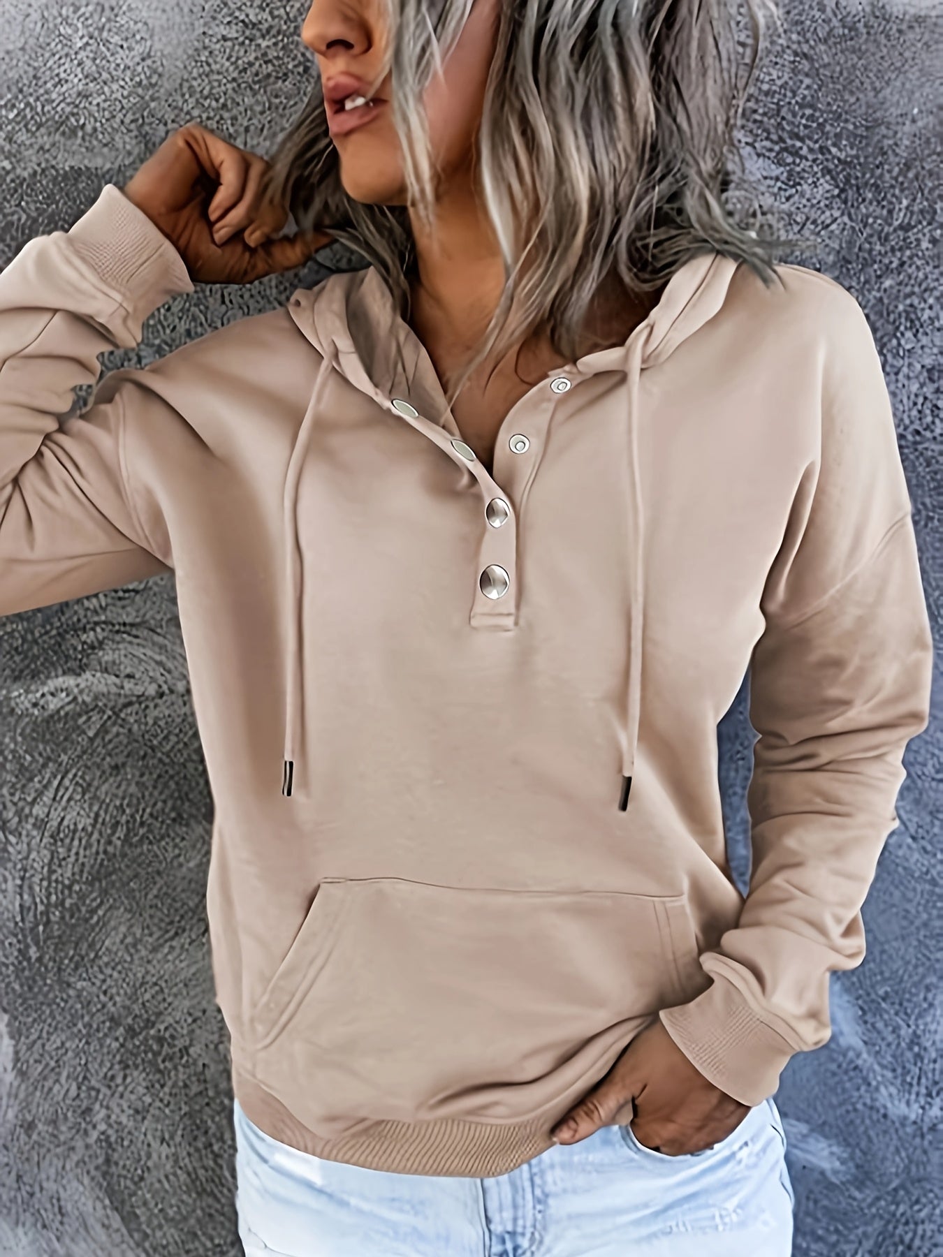Blød Hoodie med Knapdetaljer | Bomuld | Komfortabel
