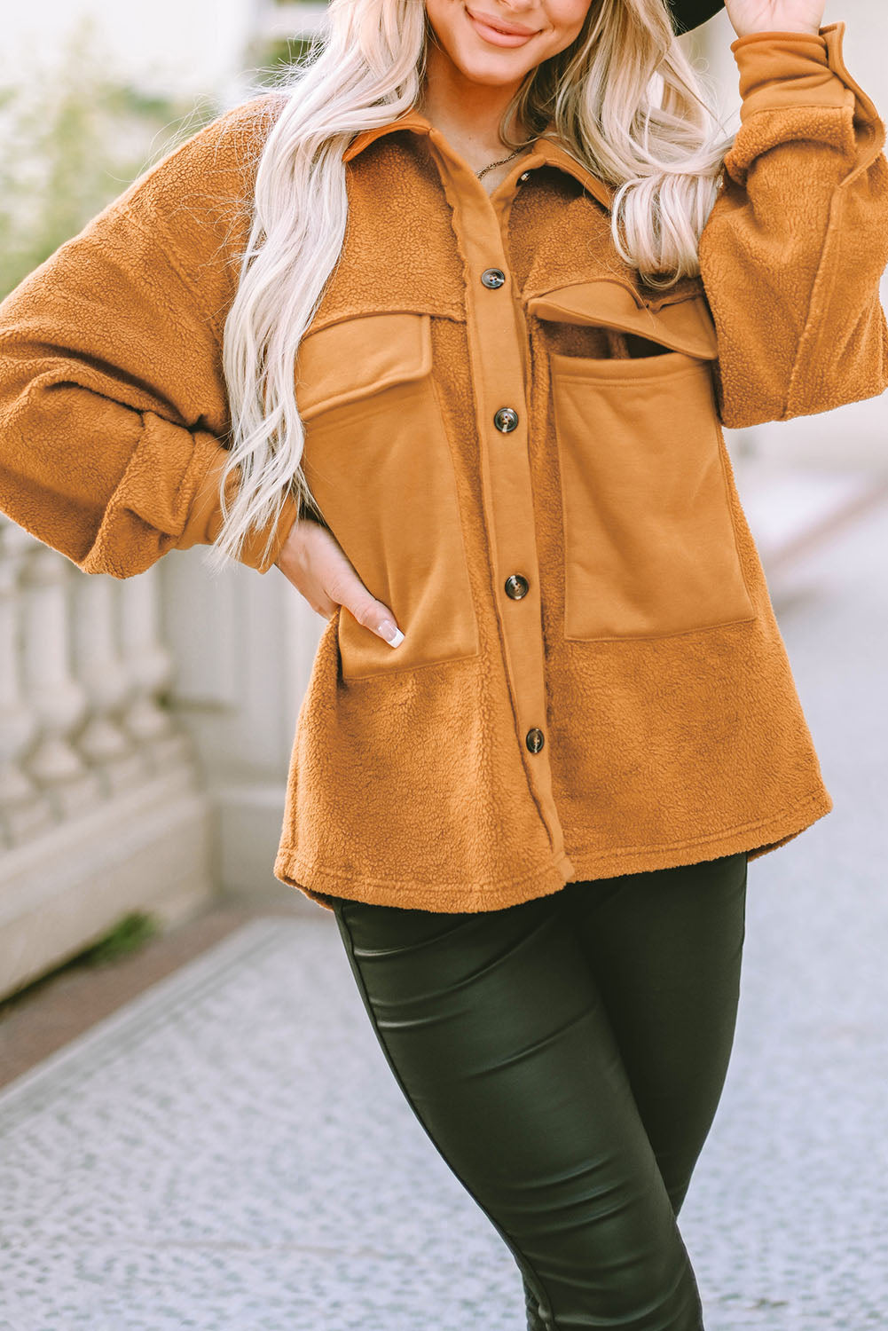 Denne skjortejakke i teddystof er et perfekt valg til dig, der elsker varme, struktur og et casual udtryk. De store frontlommer fremhæver designet og giver praktiske opbevaringsmuligheder, mens de grove teksturer og de brede ærmer skaber et moderne og afslappet look. En stilren jakke, der kan bruges både indendørs og som let overtøj.