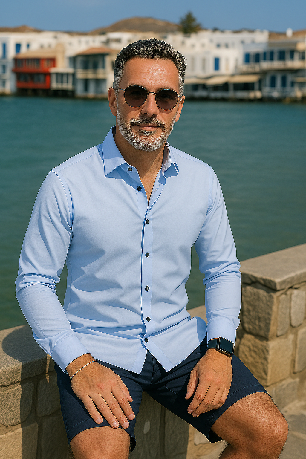 Denne moderne business-skjorte til herrer kombinerer funktion og stil i ét design. Med sit strygefri materiale og fleksible pasform er den ideel til både kontoret og hverdagen. Skjorten er skåret i en slank silhuet, der fremhæver kroppen uden at stramme, og den klassiske flipkrave giver et sofistikeret udtryk. Knaplukningen er diskret og sikrer en glat front, mens det elastiske materiale sikrer bevægelsesfrihed hele dagen. Et must-have i enhver garderobe for den moderne mand.