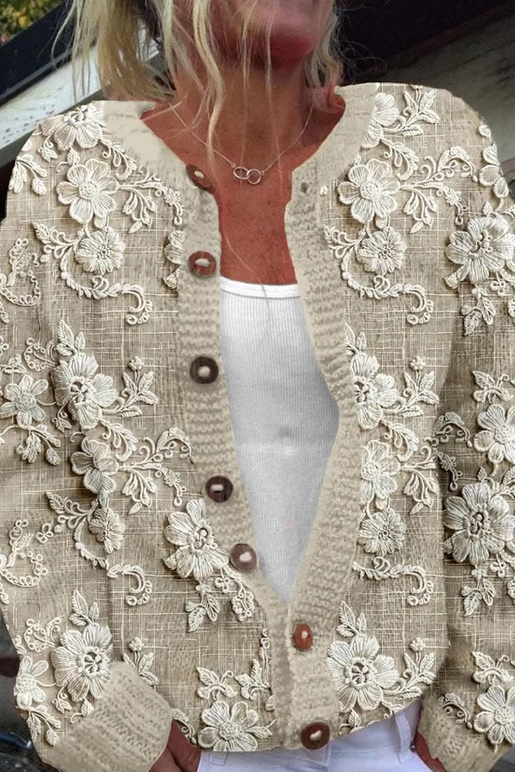 Cardigan med 3D Blonder | Knaplukning | Romantisk & Afslappet