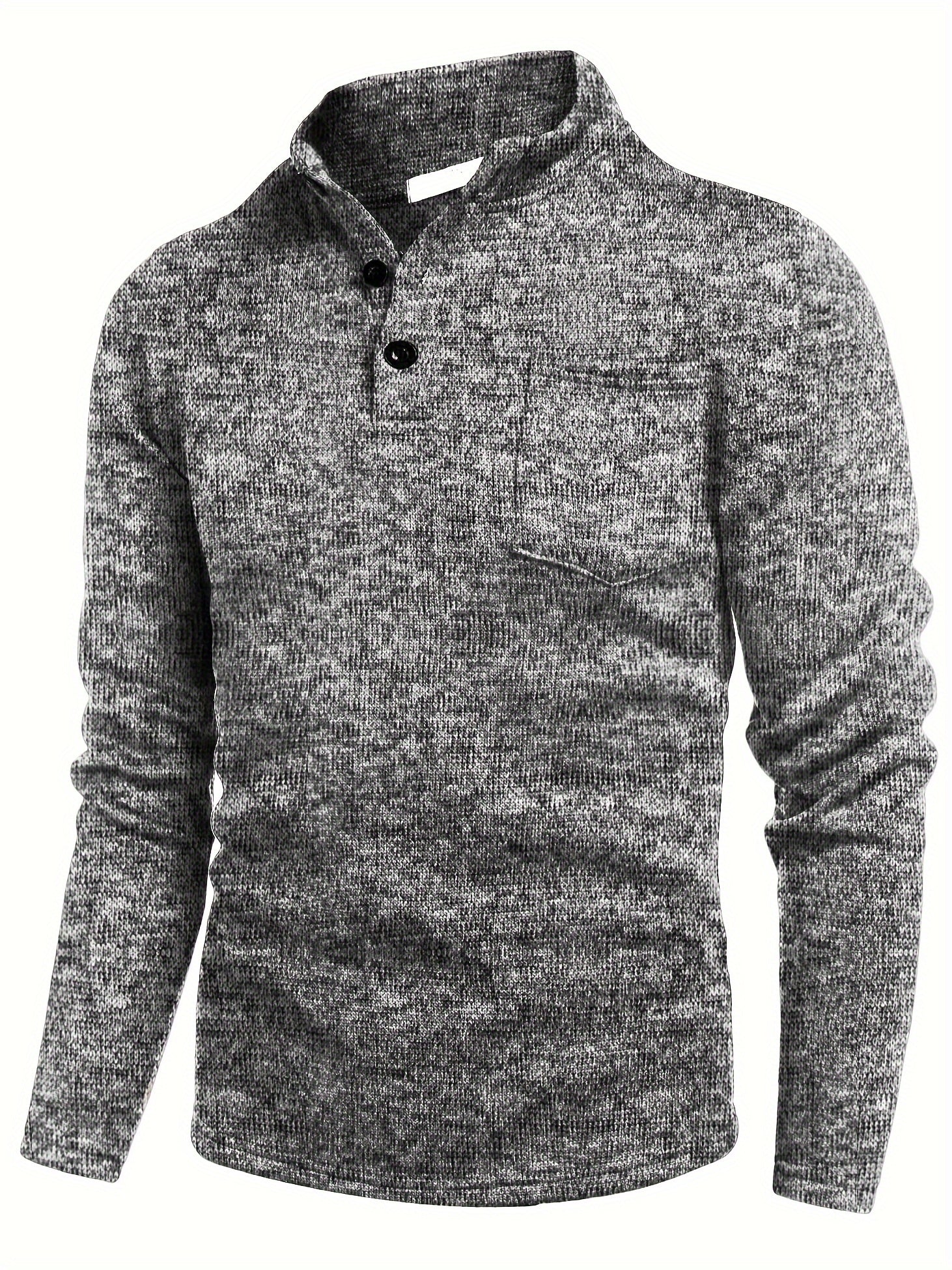 Denne striktrøje kombinerer et klassisk look med praktiske detaljer. Den strukturerede overflade og melerede effekt giver trøjen karakter, mens brystlommen og knapperne ved halsudskæringen tilføjer funktion og stil. Med lange ærmer og en blød finish er den ideel til både hverdagsbrug og mere afslappede anledninger.