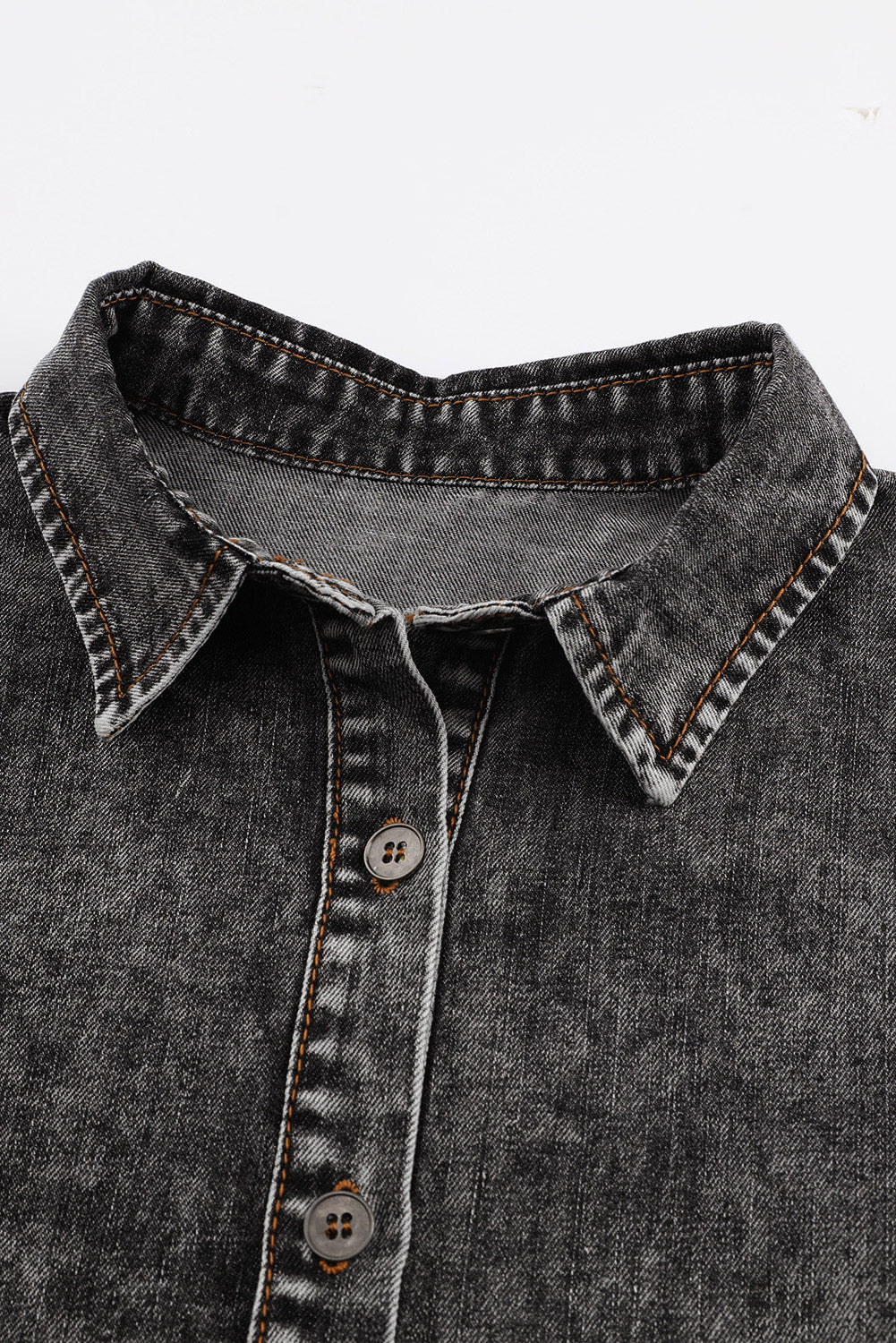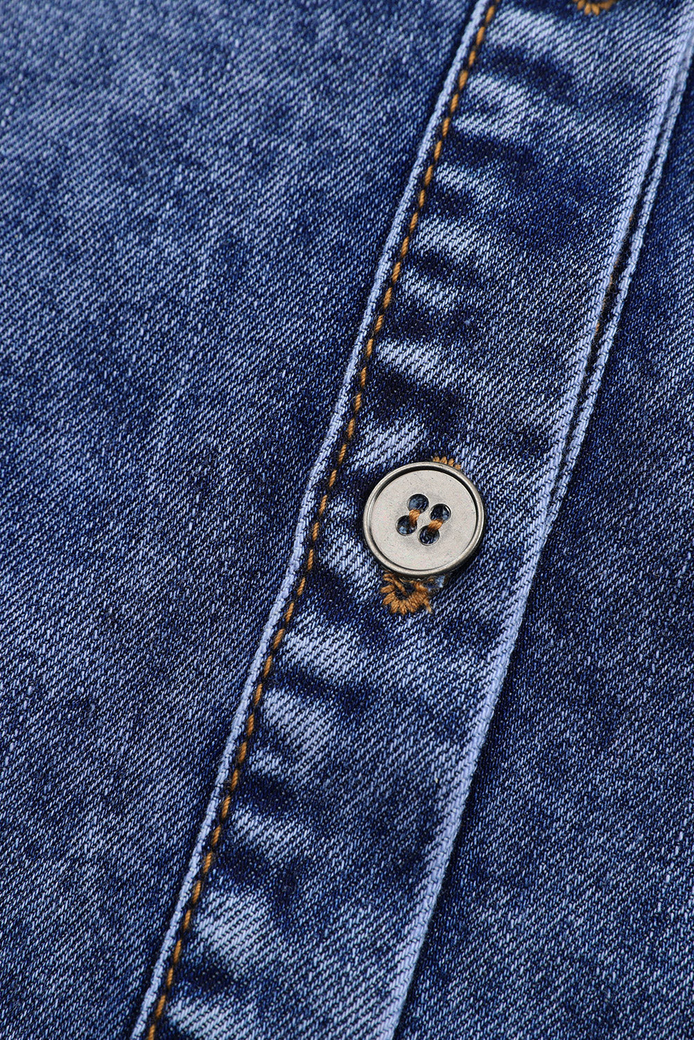 Leder du efter en skjorte, der kombinerer tidløs denim med elegante detaljer?