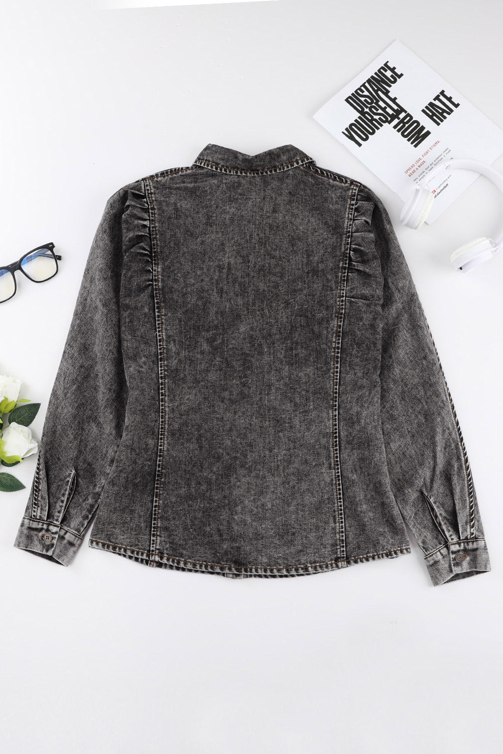 Denim Bluse med Puffærmer | Bomuld |Klassisk & Elegant Stil