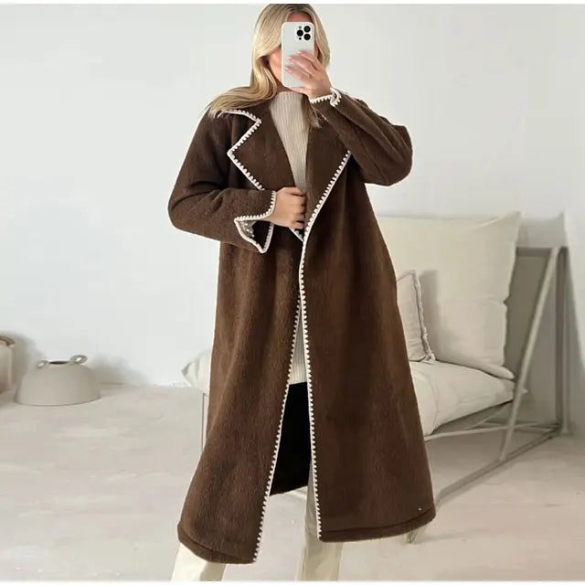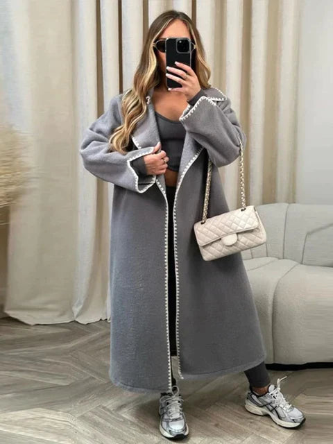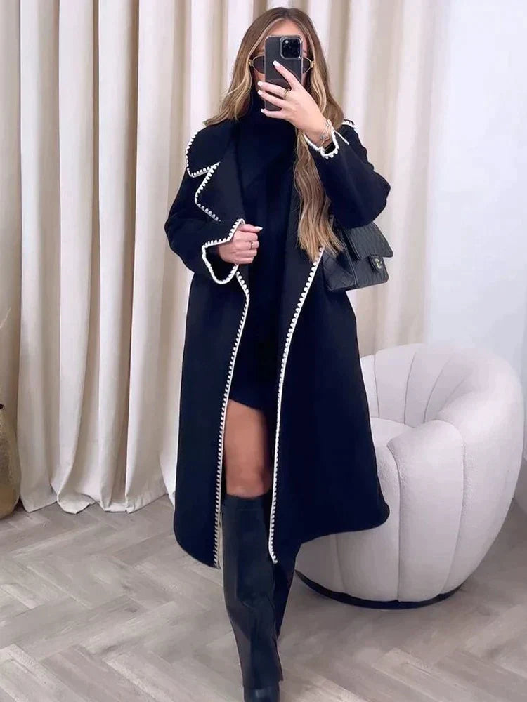 Elegant Lang Frakke med Kontrast Syning | Uldblanding | Luksuriøs, Behagelig