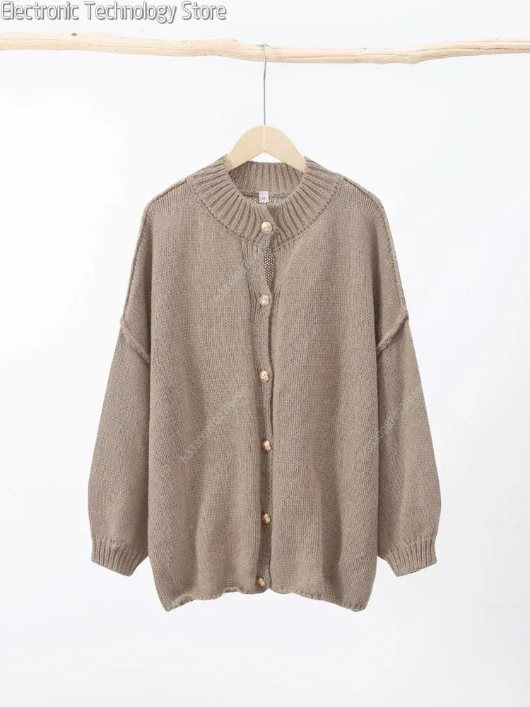 Elegant Strikket Cardigan med Knapper | Uld/Akryl | Komfortabel og Stilfuld