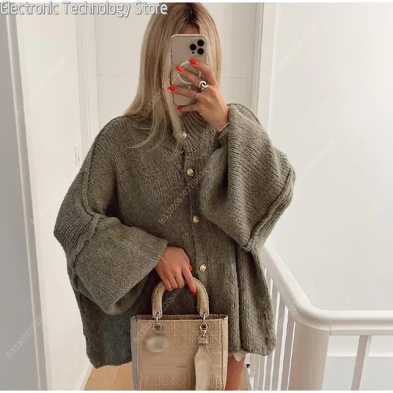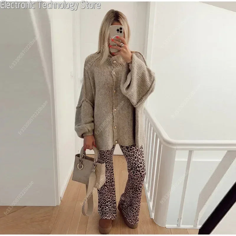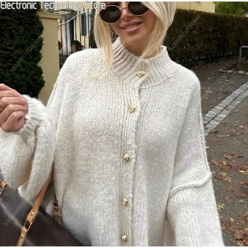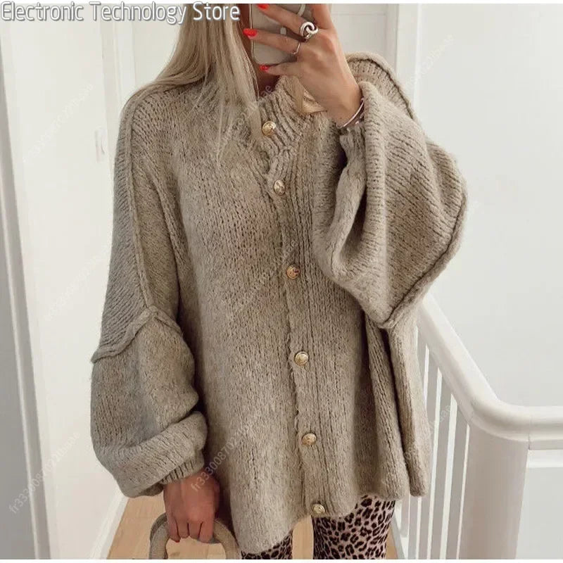 Denne oversized striktrøje med dekorative knapper og karakteristiske ballonærmer er den perfekte kombination af afslappet elegance og hyggelig varme. Det løstsiddende snit og de bløde materialer gør den ideel til både hjemmehygge og casual hverdagsbrug. Et stilsikkert valg til efteråret og vinterens kølige dage.