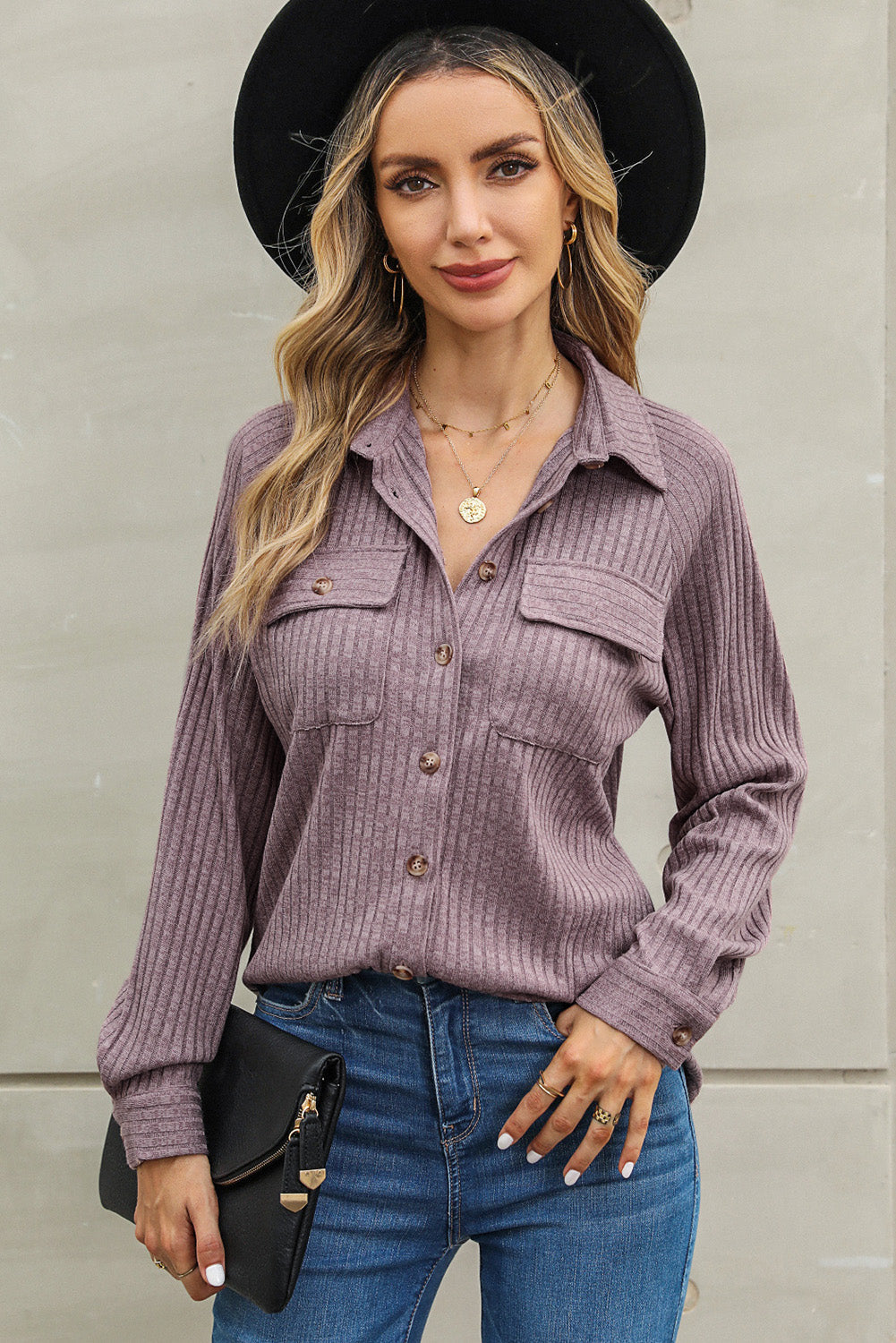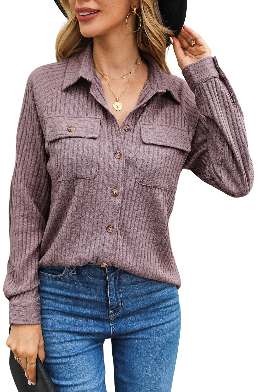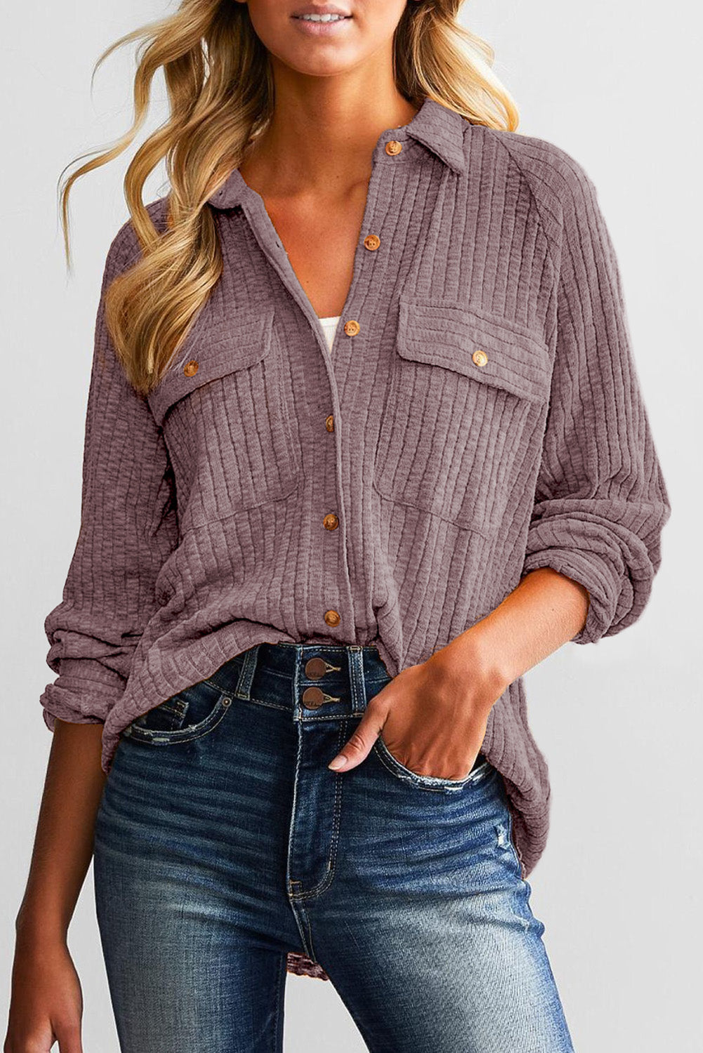 Ribbet Skjorte med Knapper | Blødt Strikstof | Ideel til Hverdagsstil