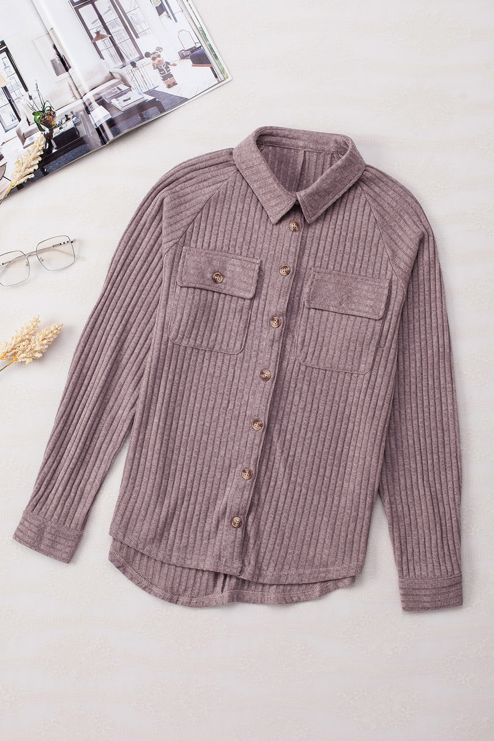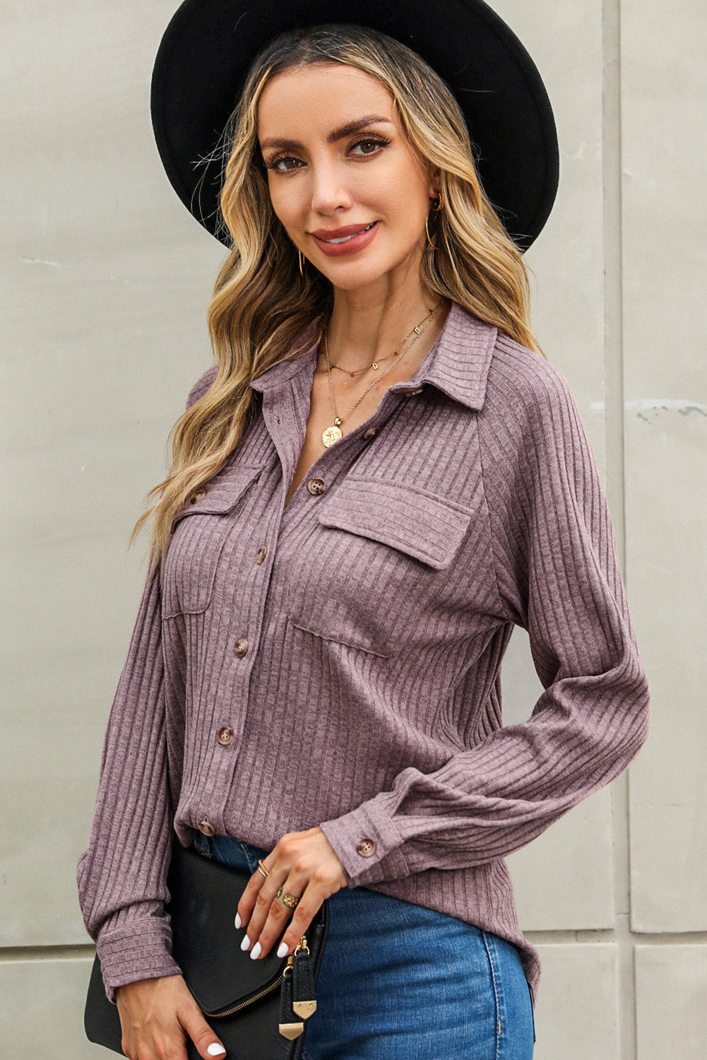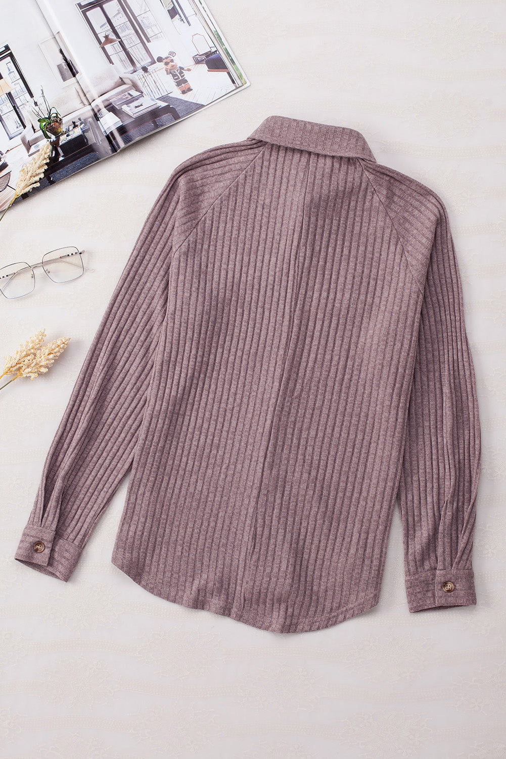 Ribbet Skjorte med Knapper | Blødt Strikstof | Ideel til Hverdagsstil