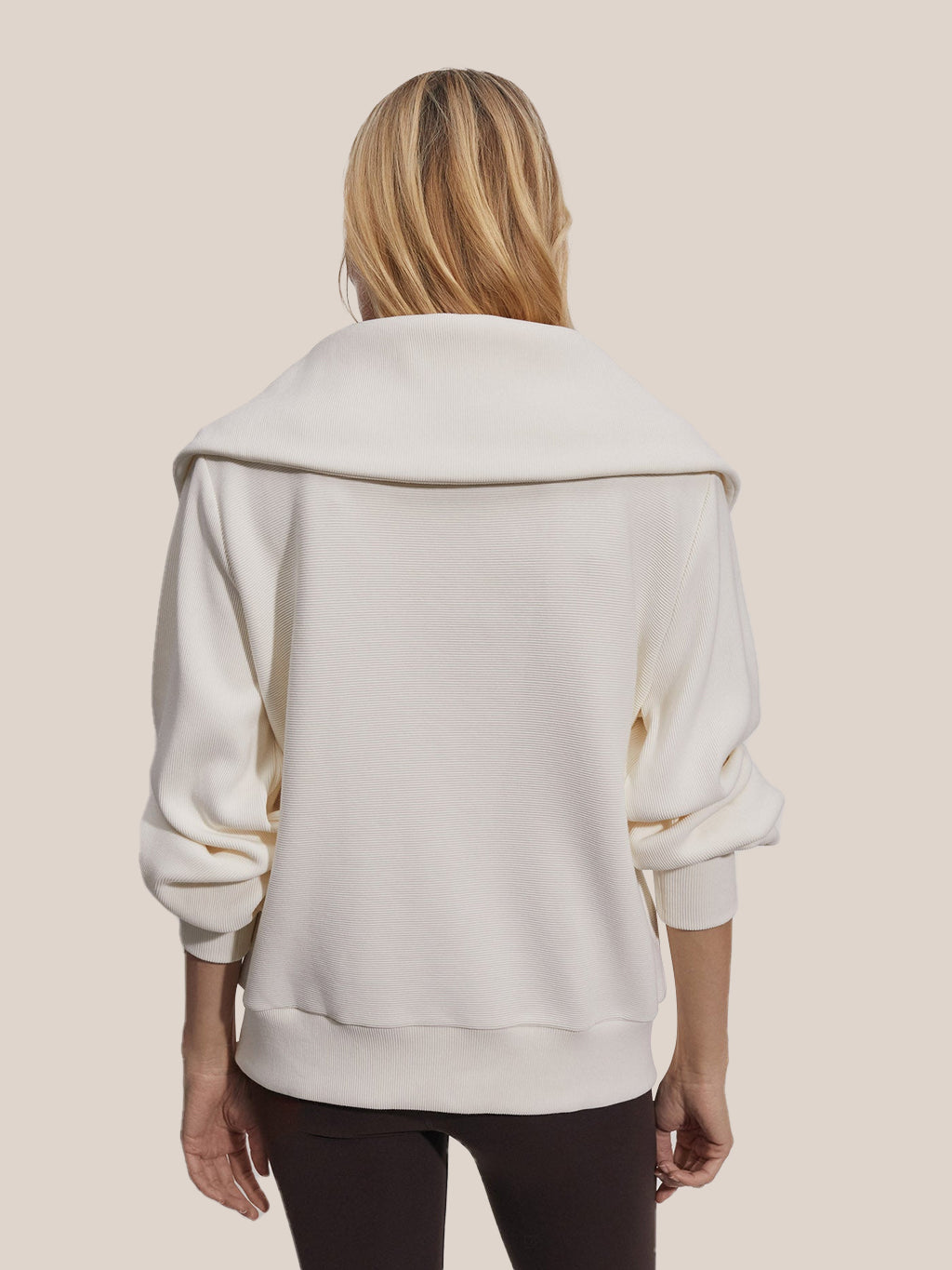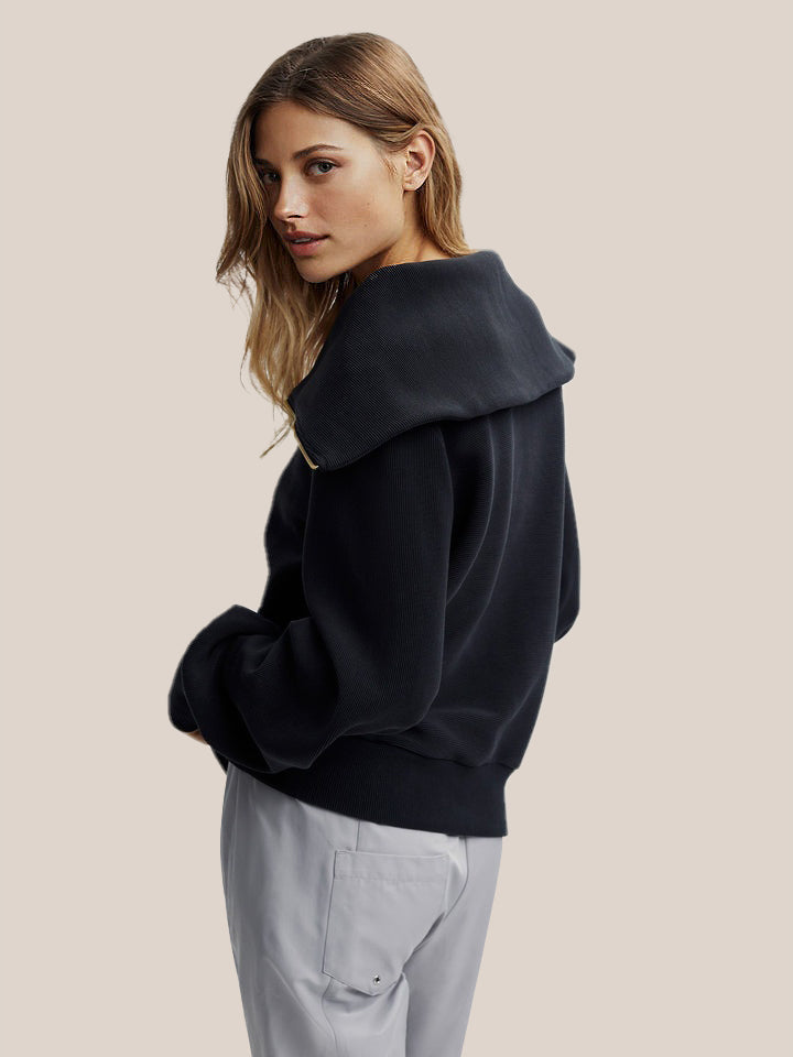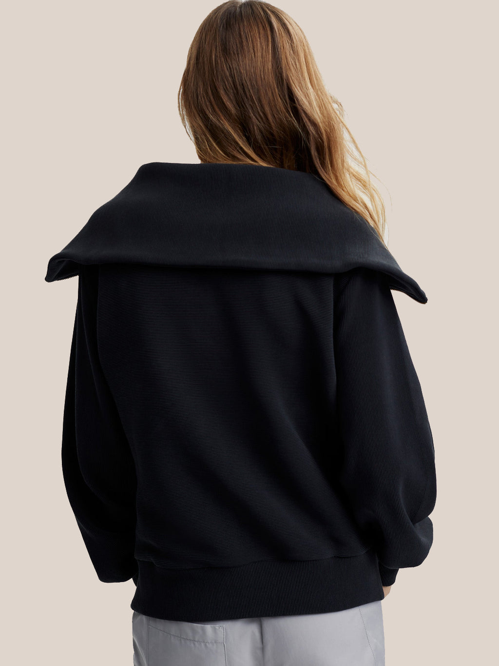 Denne sweatshirt er ideel til hverdagsbrug med sit sporty udtryk og afslappede pasform. Den markante lynlås med ringtræk og den brede krave tilføjer et moderne twist, mens det bløde materiale sikrer en behagelig oplevelse hele dagen. Perfekt til både afslapning og aktive dage med et stilfuldt touch.