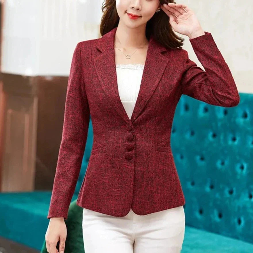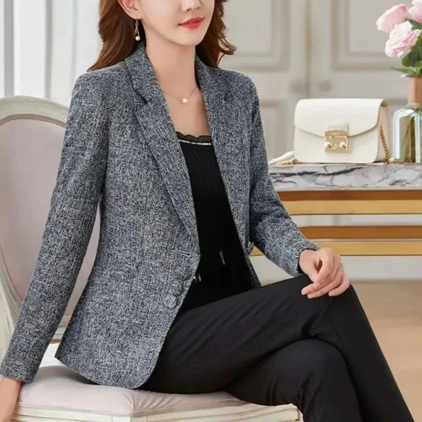 Leder du efter en blazer, der kombinerer skarp elegance med en feminin silhuet?