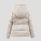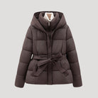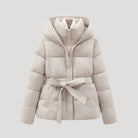 Denne korte puffer jakke til kvinder kombinerer feminin elegance med praktisk vinterkomfort. Jakken har en figurskabende taljebælte, der fremhæver silhuetten og giver et mere sofistikeret look end klassiske puffer-modeller.