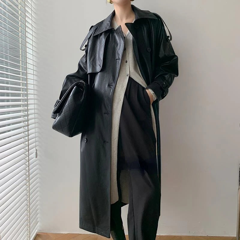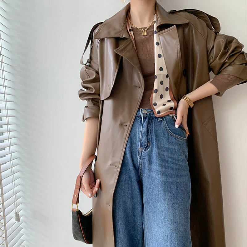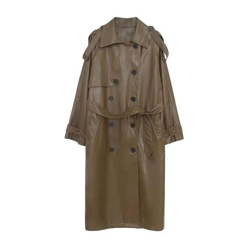 Lang Trenchcoat til Kvinder | Læderlook | Stilfuld og Moderne