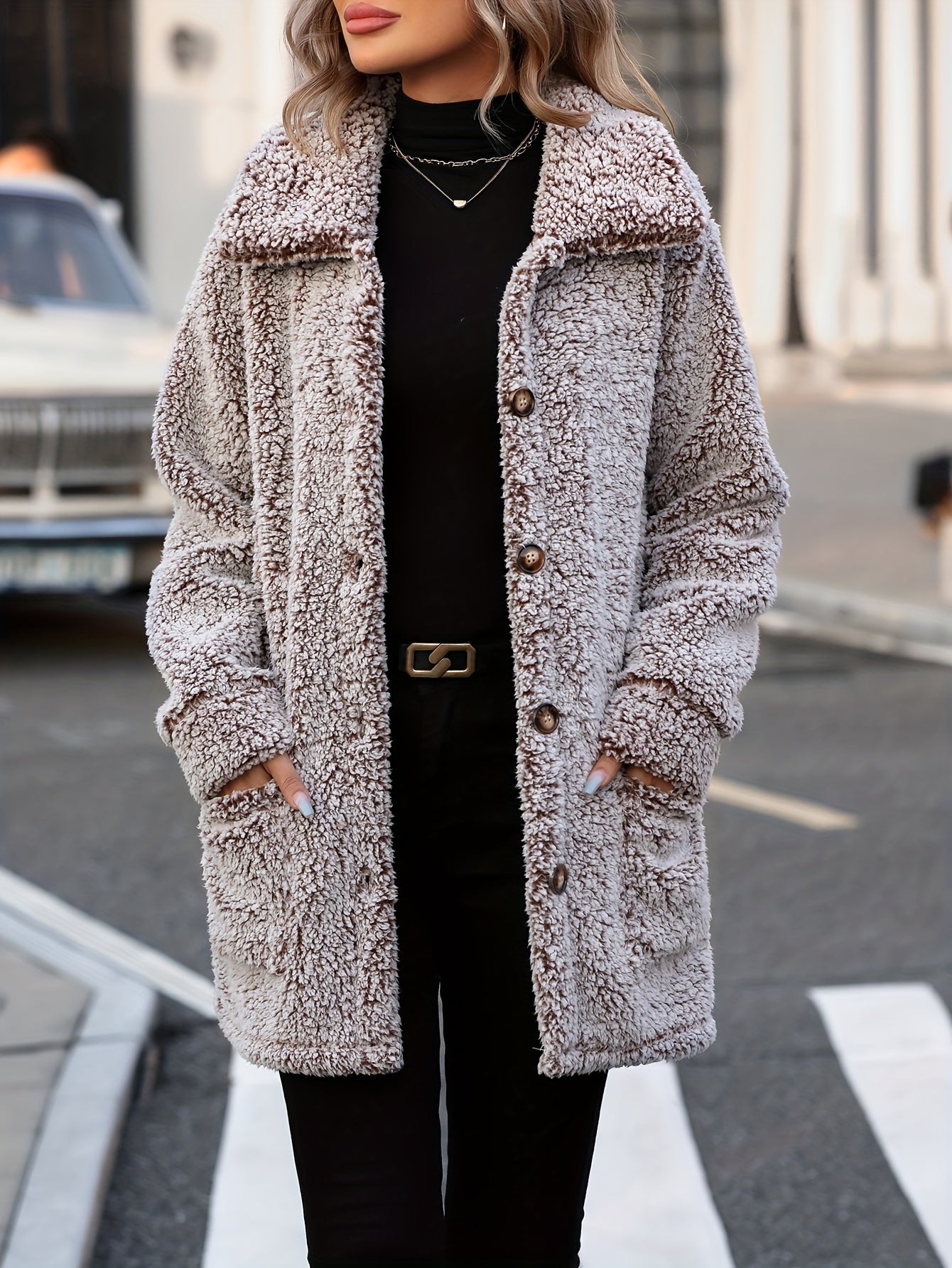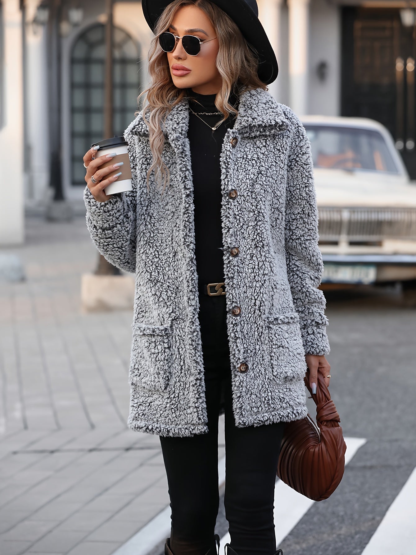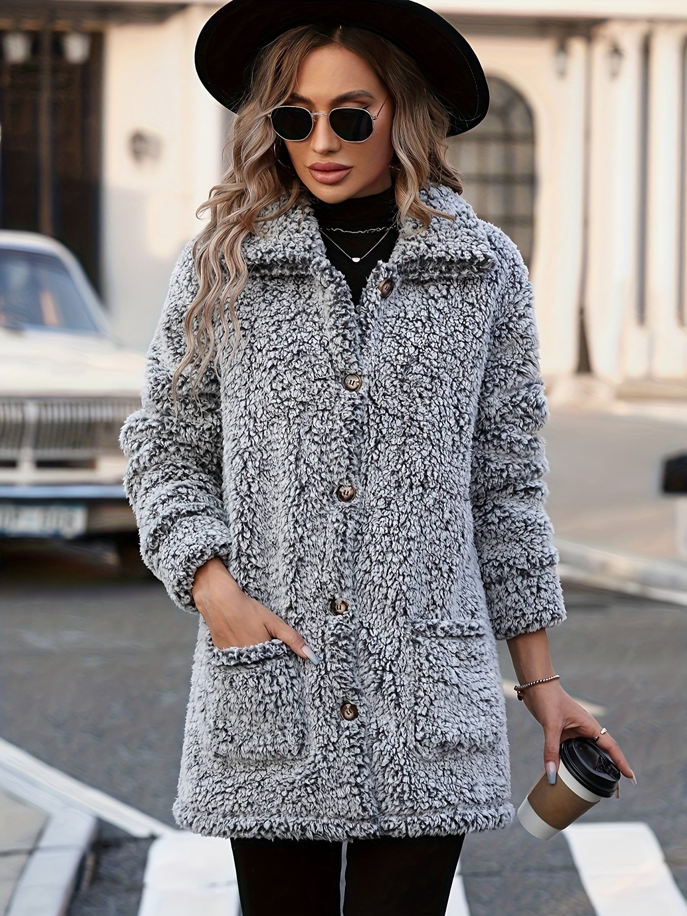 Lang Teddyjakke med Knapper | Polyester | Komfortabel & Varm