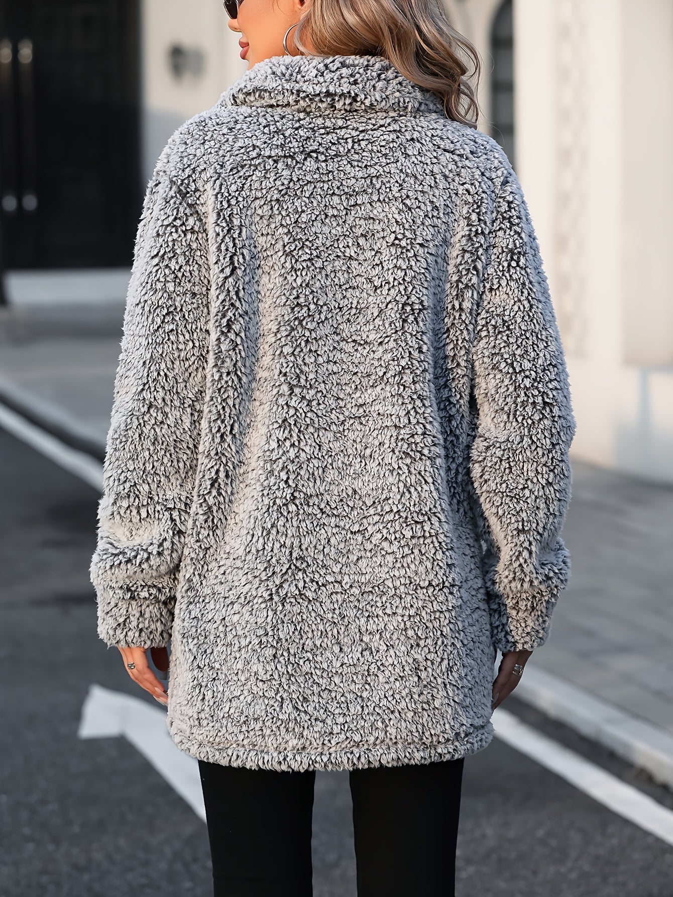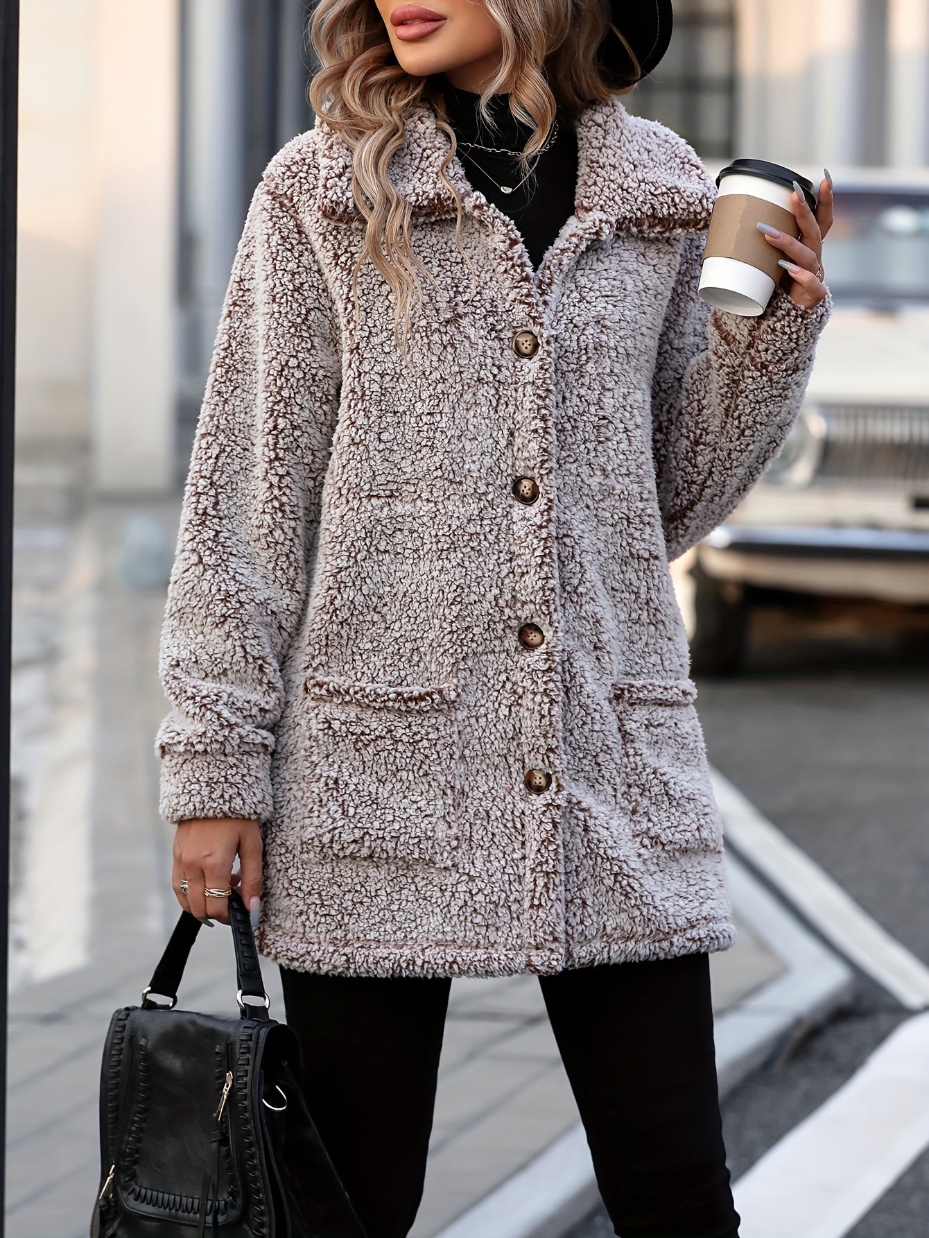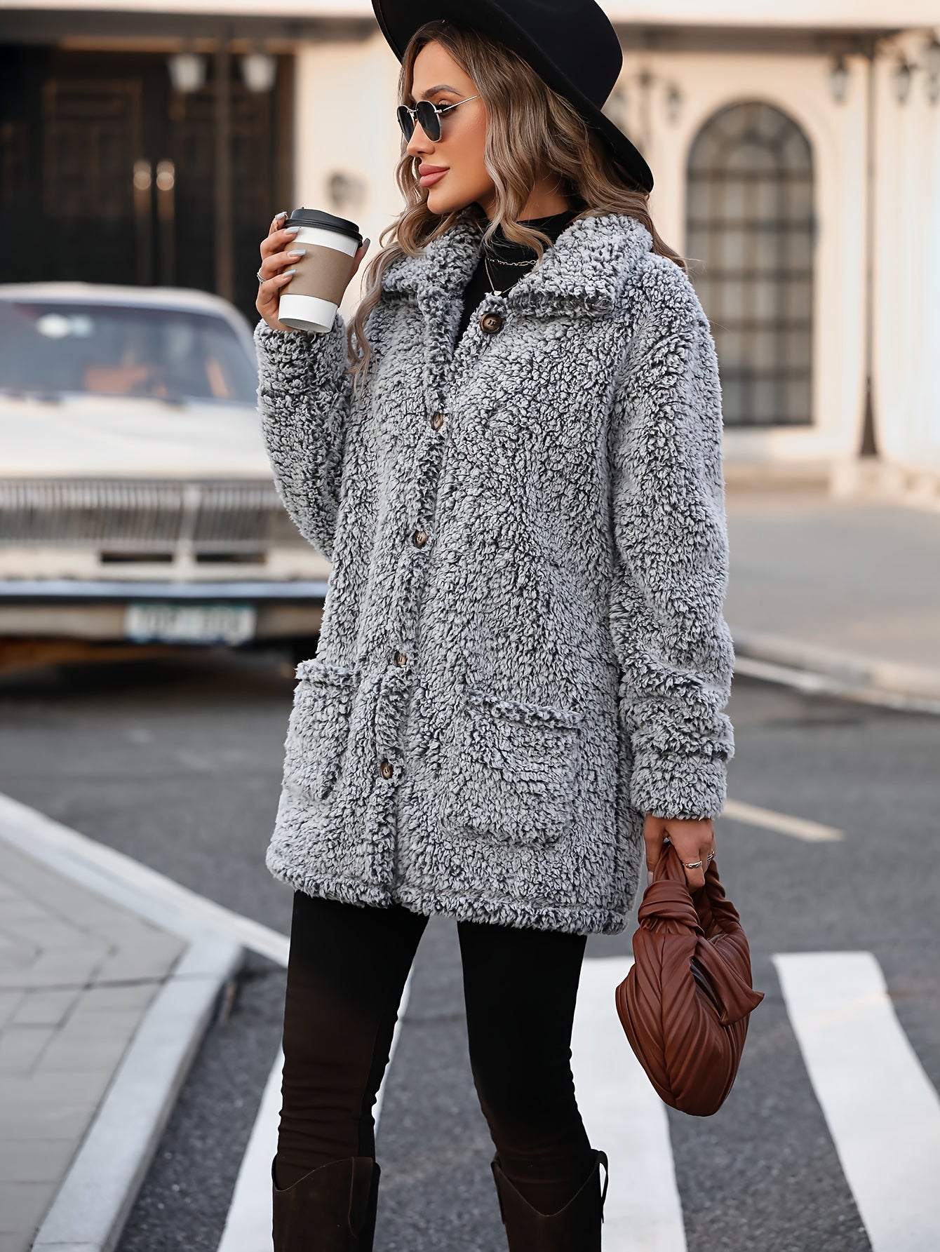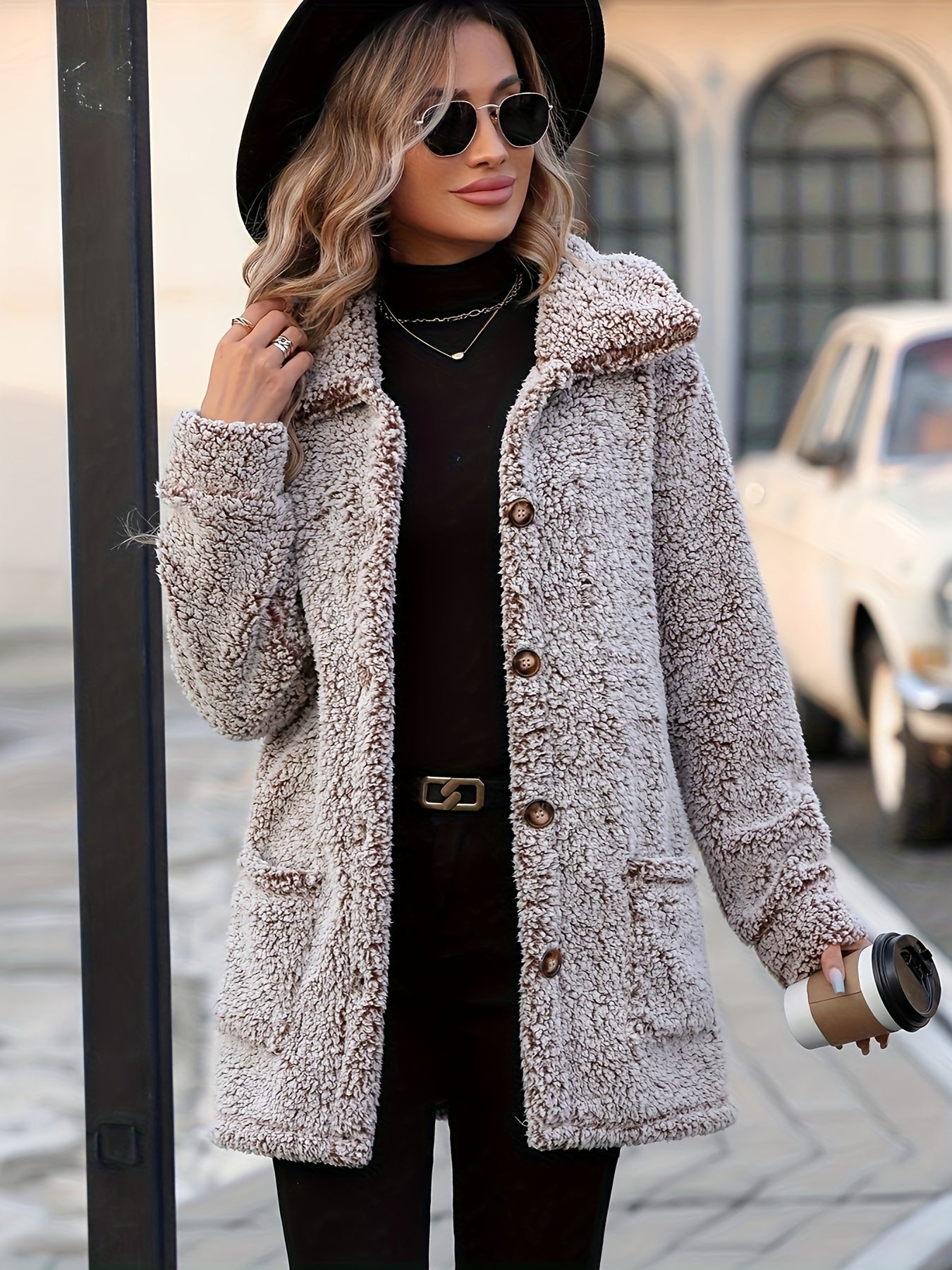 Lang Teddyjakke med Knapper | Polyester | Komfortabel & Varm