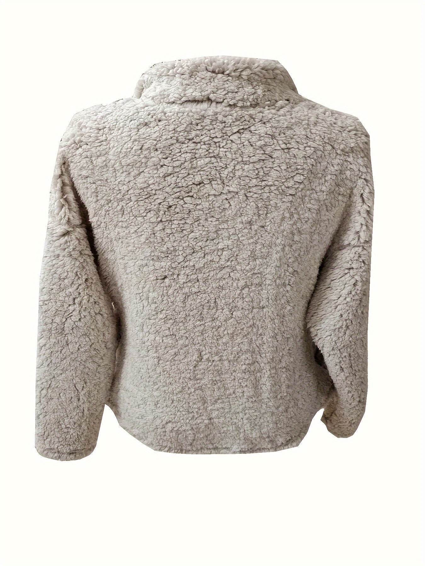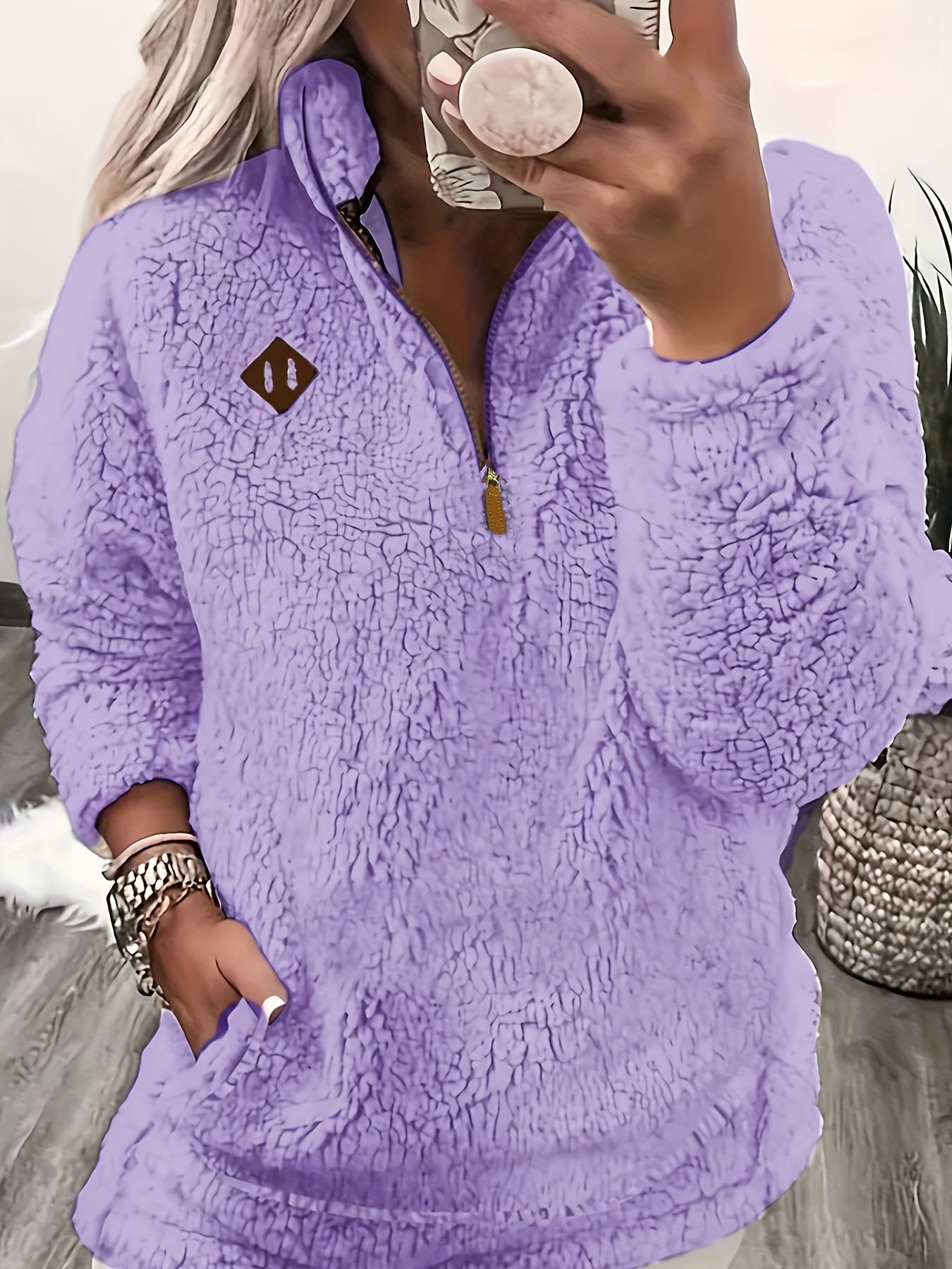 Denne teddy-fleecetrøje med halv lynlås er skabt til de kolde dage, hvor komfort og varme er i højsædet. Det fluffy materiale omslutter kroppen i blødhed, mens det enkle design gør den alsidig til både hjemmebrug og afslappet hverdagsstil. En vinterfavorit, du aldrig vil tage af igen.