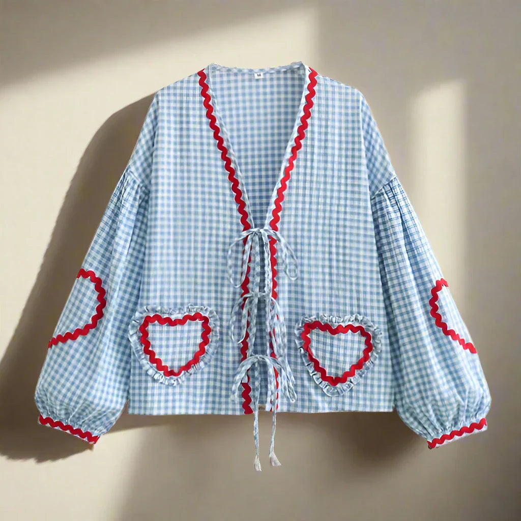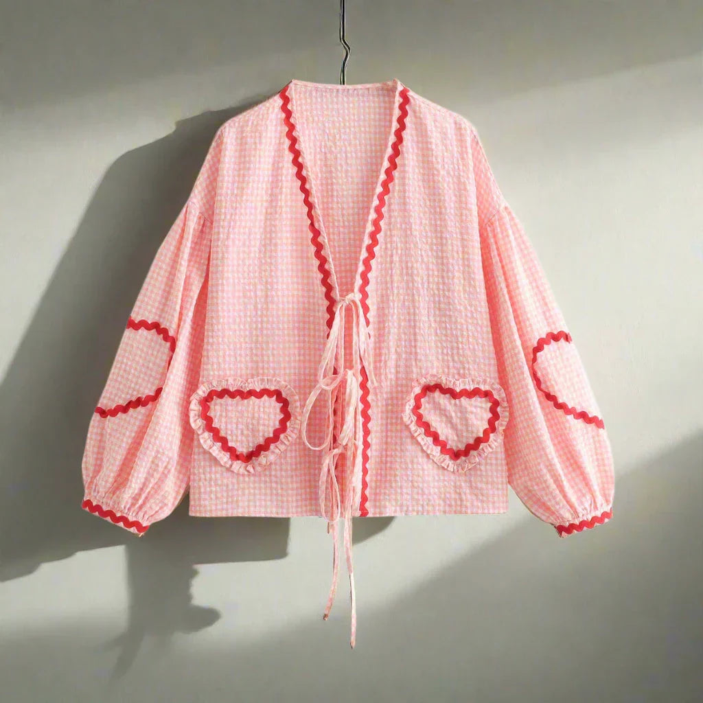 Løs Bluse med Sløjfedetaljer | Hjerteformede Lommer | Romantisk Design