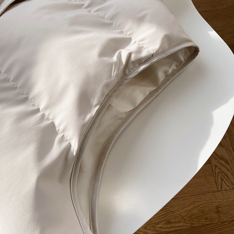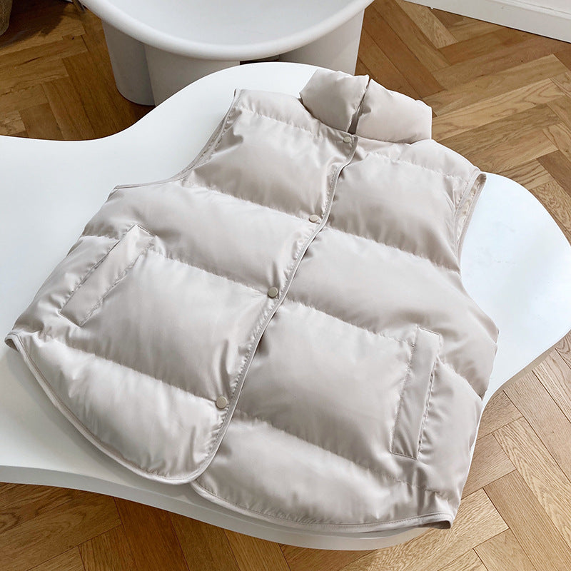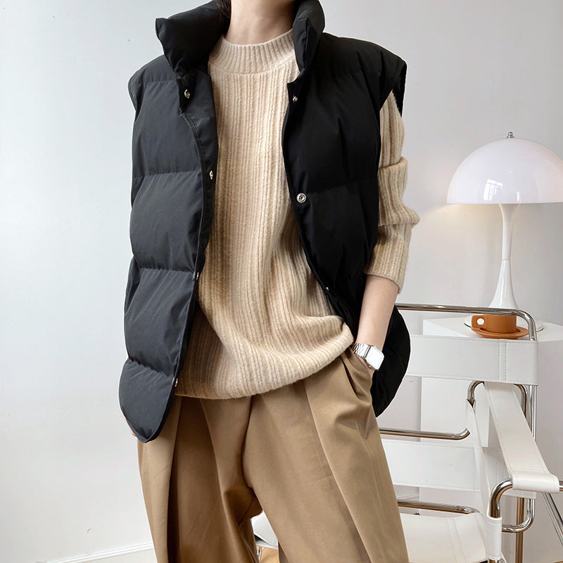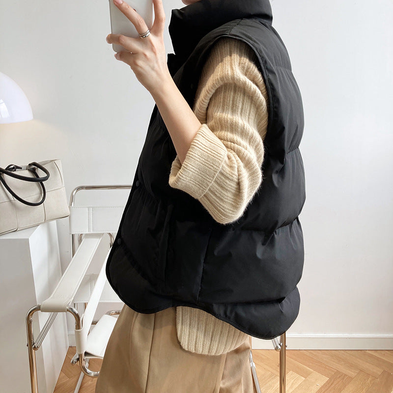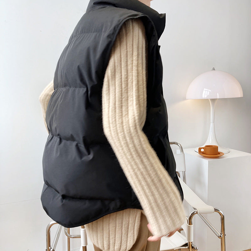 Denne lette, polstrede dunjakkevest er designet til maksimal komfort og funktion i et moderne, casual udtryk. Den høje krave beskytter mod vind og kulde, mens det bløde og glatte ydermateriale sikrer et stilrent look. Perfekt til lag-på-lag styling over sweatre og hoodies på kølige dage.
