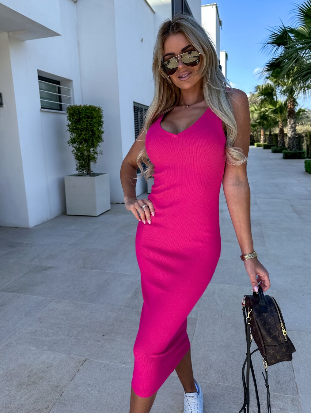 Denne ribstrikkede midikjole er et perfekt valg til både hverdag og afslappede udflugter. Det ærmeløse design og den tætsiddende silhuet fremhæver figuren, mens den elastiske struktur giver maksimal bevægelsesfrihed. Et klassisk og alsidigt stykke, der nemt kan dresses op eller ned afhængigt af lejligheden.