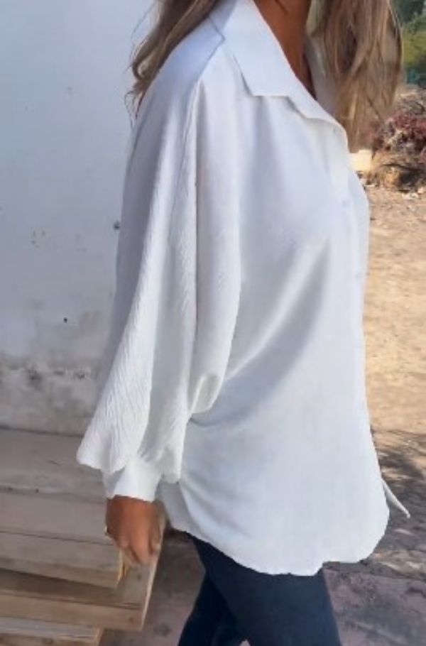 Denne skjorte er et tidløst item, som passer ind i enhver garderobe. Den lette struktur i stoffet tilfører subtil dybde, mens den løse pasform og klassiske skjortekrave gør den ideel til både afslappede og mere polerede outfits. Den kan styles både nede i bukserne for et strømlinet look eller bæres løst for et mere casual udtryk.