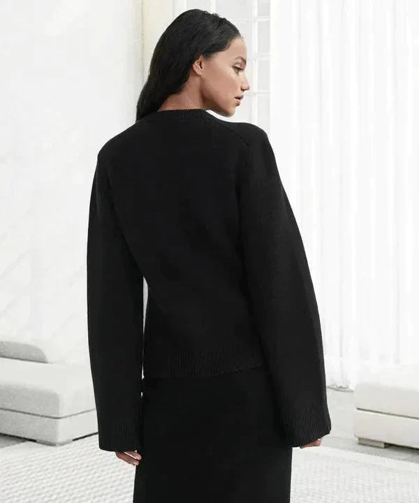 Denne luksuriøse strik-cardigan forener stil og komfort med sin bløde kvalitet og klassiske snit. Knaplukningen giver et sofistikeret udtryk, mens de let oversizede ærmer tilfører et moderne touch. Perfekt til både afslappede dage og stilfulde outfits.