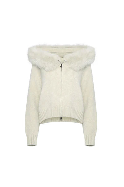 Denne luksuriøse strikjakke har en smuk kunstpelskrave, der tilfører et sofistikeret touch til dit look. Den bløde og varme strik gør den ideel til kølige dage, mens lynlåslukningen og den tætsiddende pasform giver et moderne udtryk. Perfekt til både hverdagsbrug og elegante anledninger.