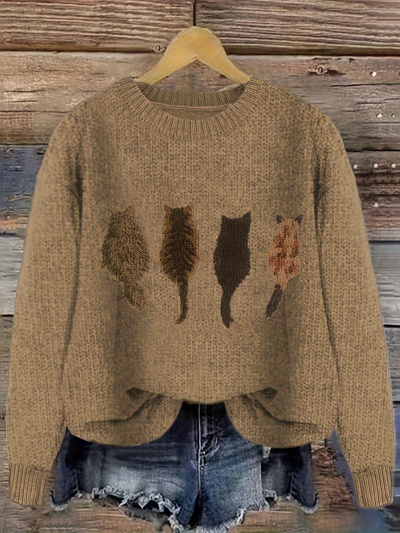 Strikket Sweater med Kattedesign | Akrylblanding | Komfortabel og Stilfuld