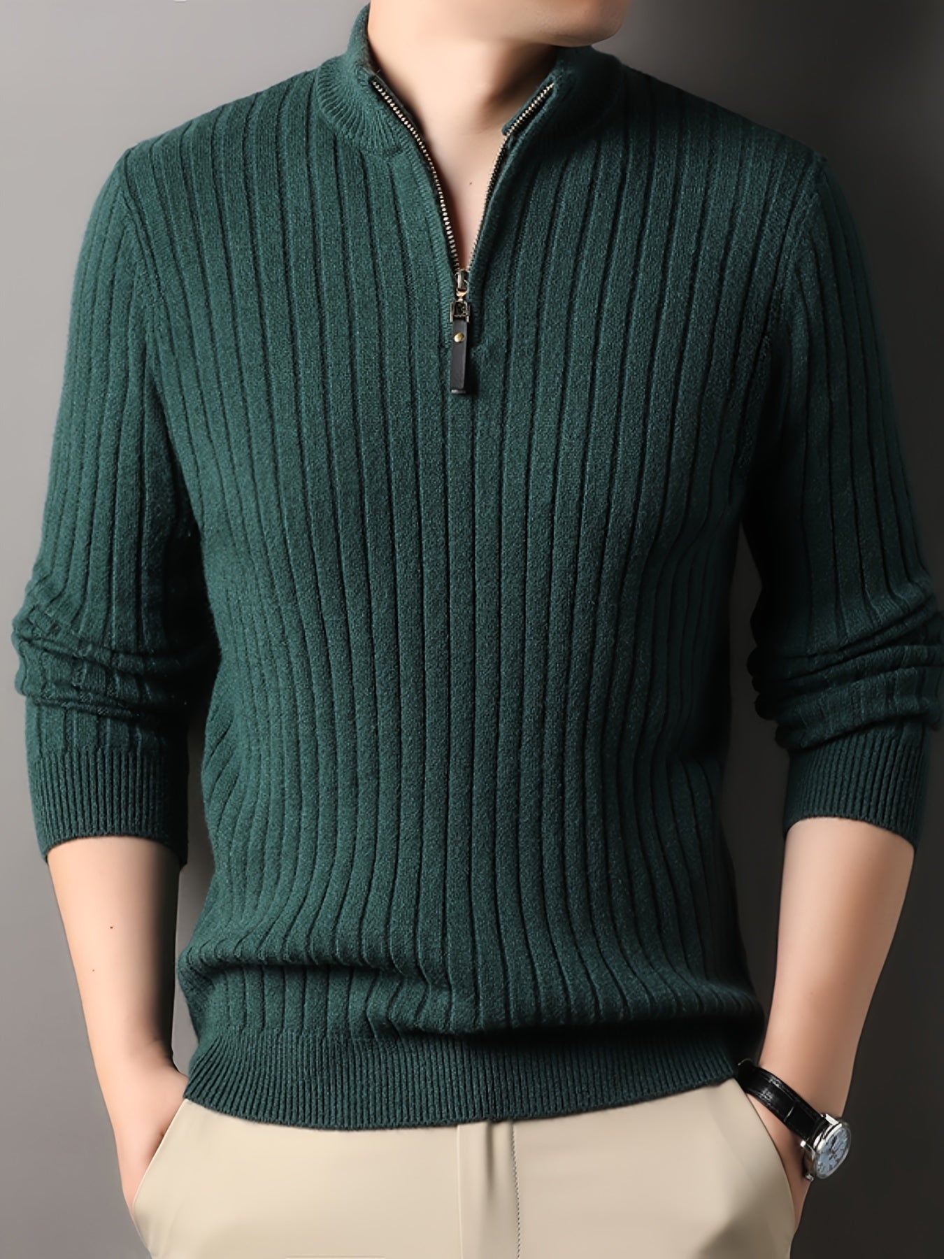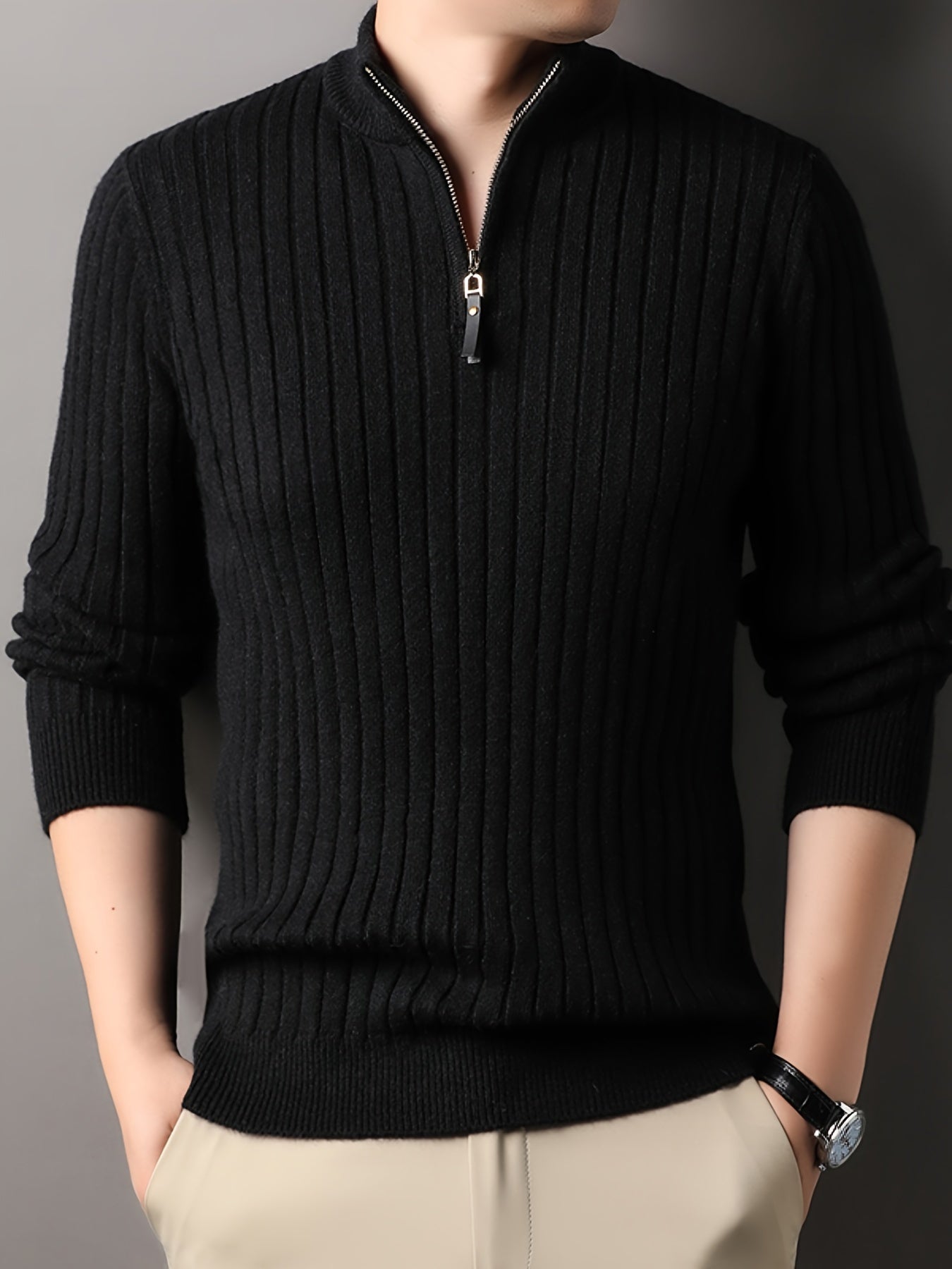 Striktrøje med Høj Krave og Lynlås | Ribbet Design | Blødt Materiale