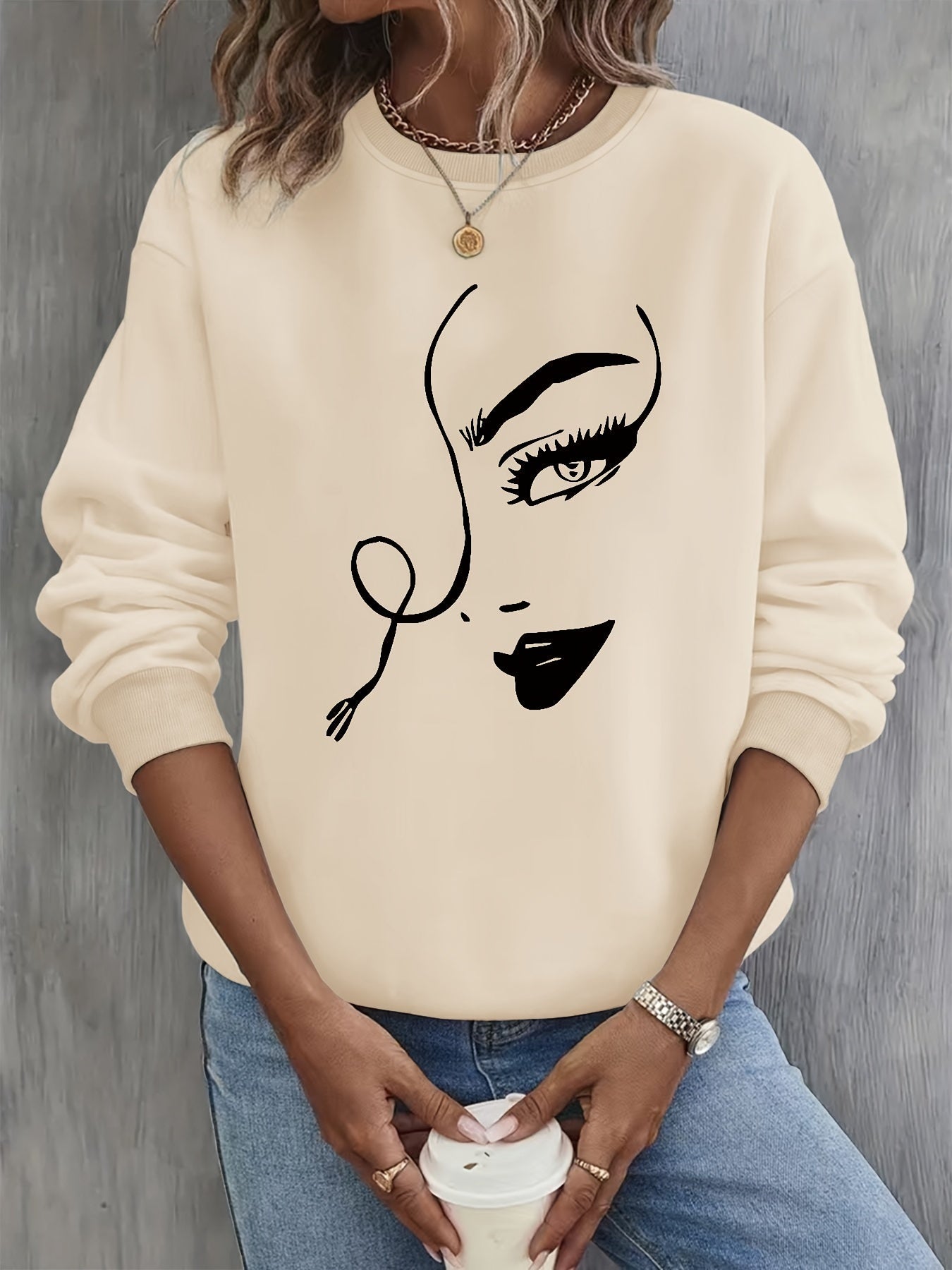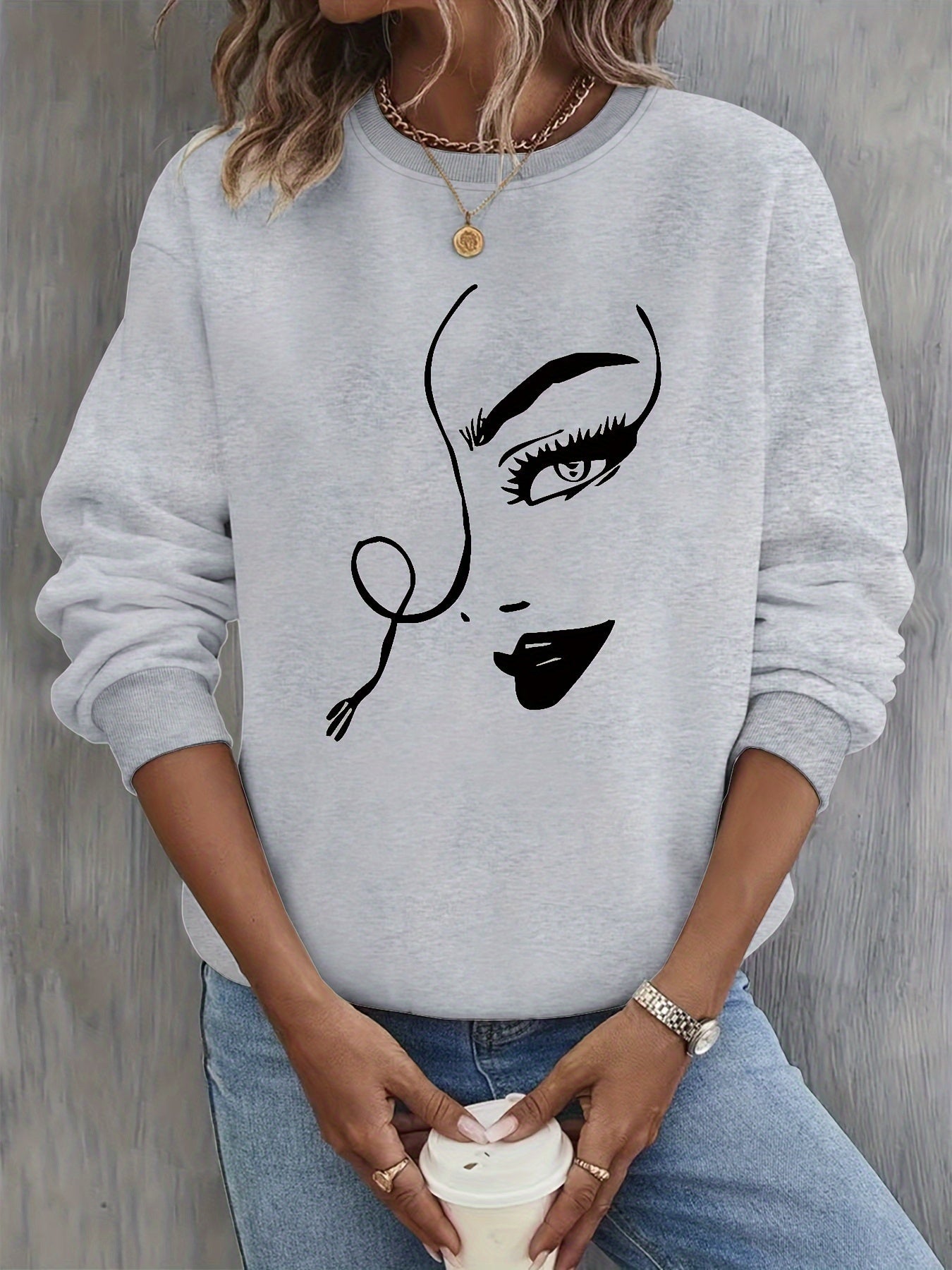 Sweatshirt med Kunstnerisk Ansigt | Bomuld | Trendy & Komfortabel